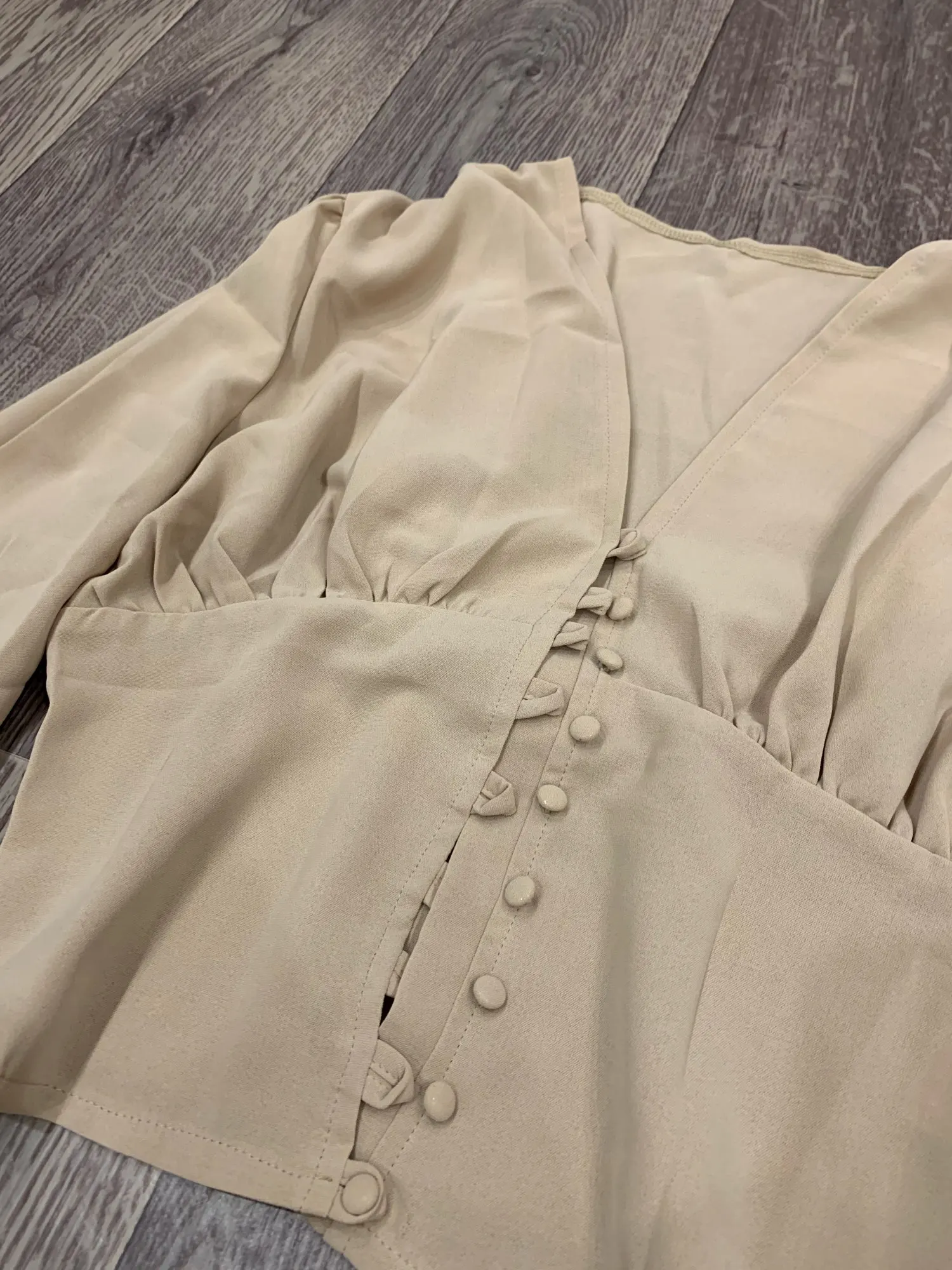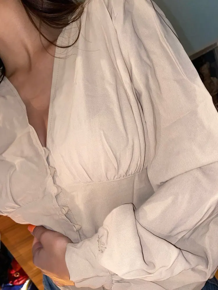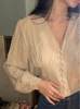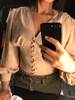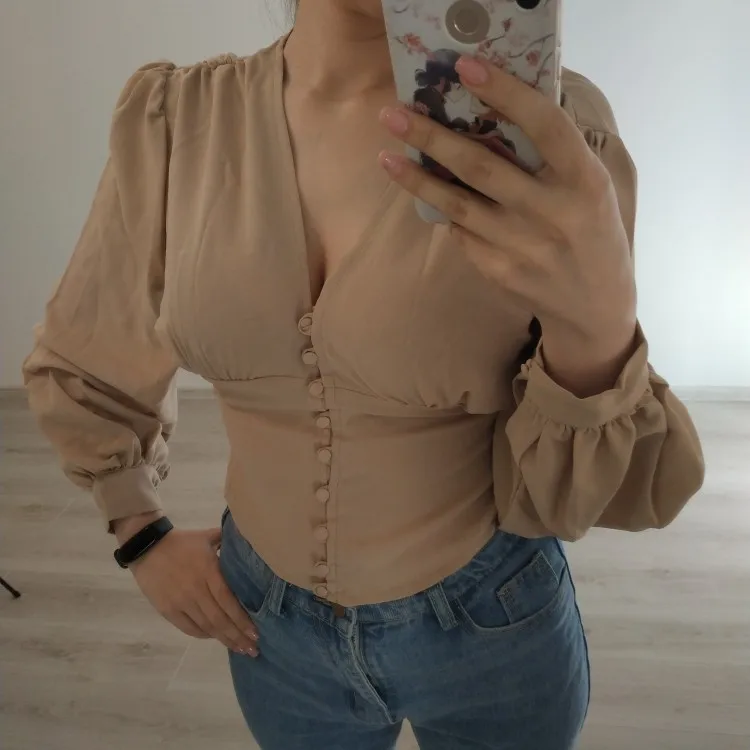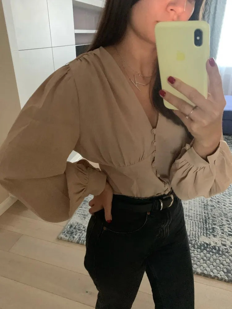 Ladies Elegant Blouse Lantern Long Sleeve Tops Autumn V Neck Crop Top Fashion Shirts Women Button Up Shirt Vintage Clothing