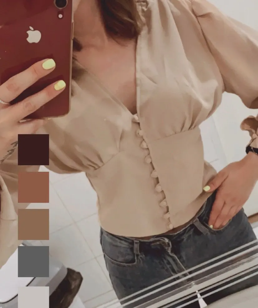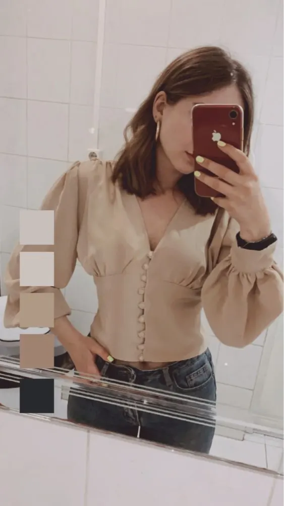 Blouse came quickly enough, the shade is pleasant, rather slightly darker than in the photo, for me a little big, sits not tight, loose, especially in the waist