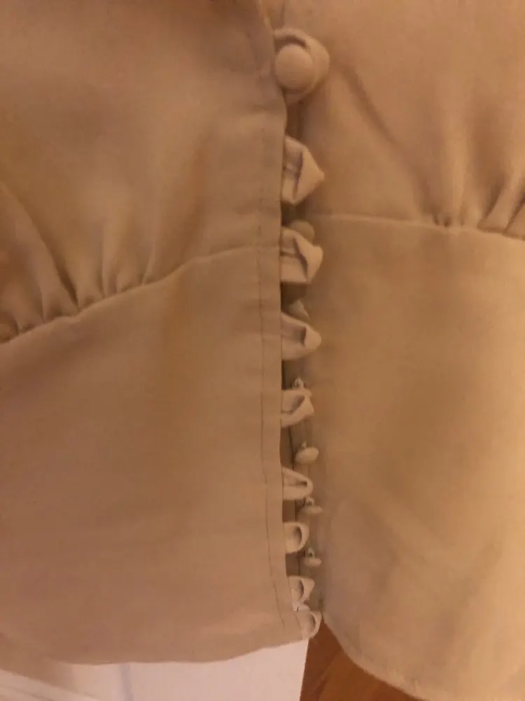 I had a heart on this blouse but it has several small downside I made a 95d it should be known that it is take off small size so take a Size above the button all along the bust and the sleeve is a real Galley to put but apart from it I love no surprise identical to the Pictures