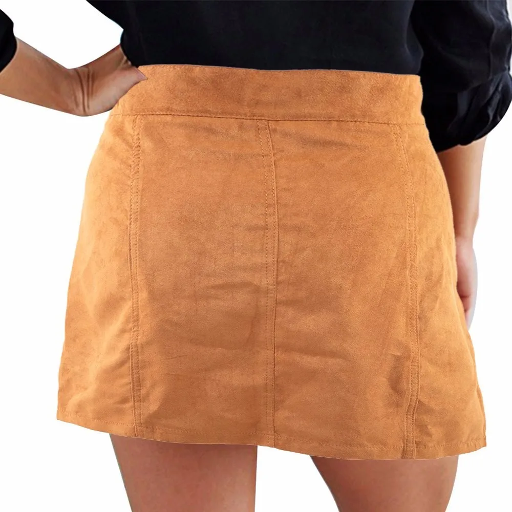 FREE SHIPPING Brown High Waist Button Mini Skirt JKP1339