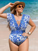 Large Size Print One Piece Swimwear Women Monokini Brazilian Bikini Ruffles With Zipper JKP6027