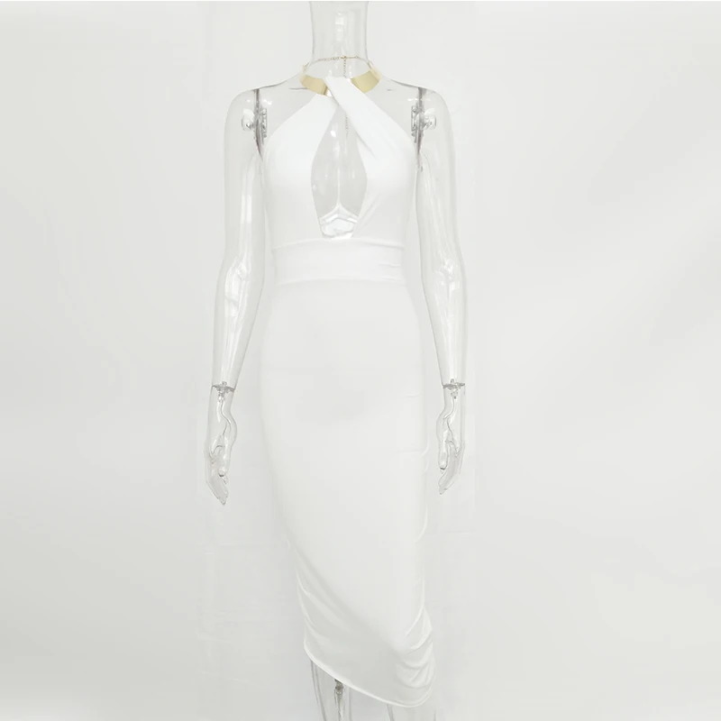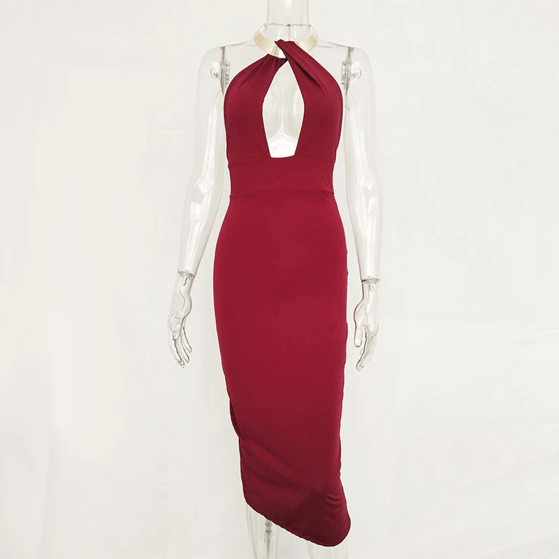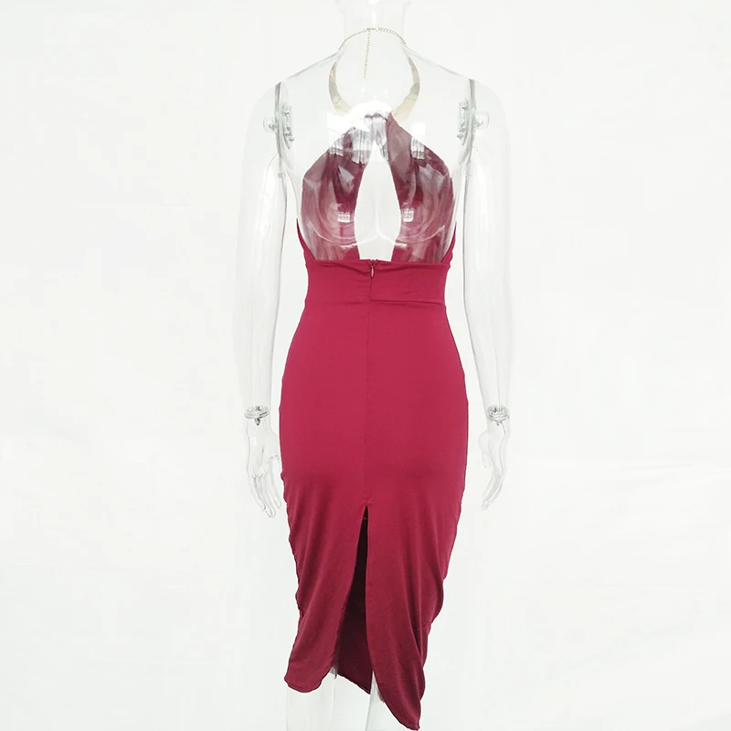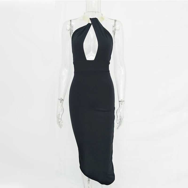 Long Pencil Dress Hollow Out Party Bodycon Bandage Dress Backless Split Winter Dress