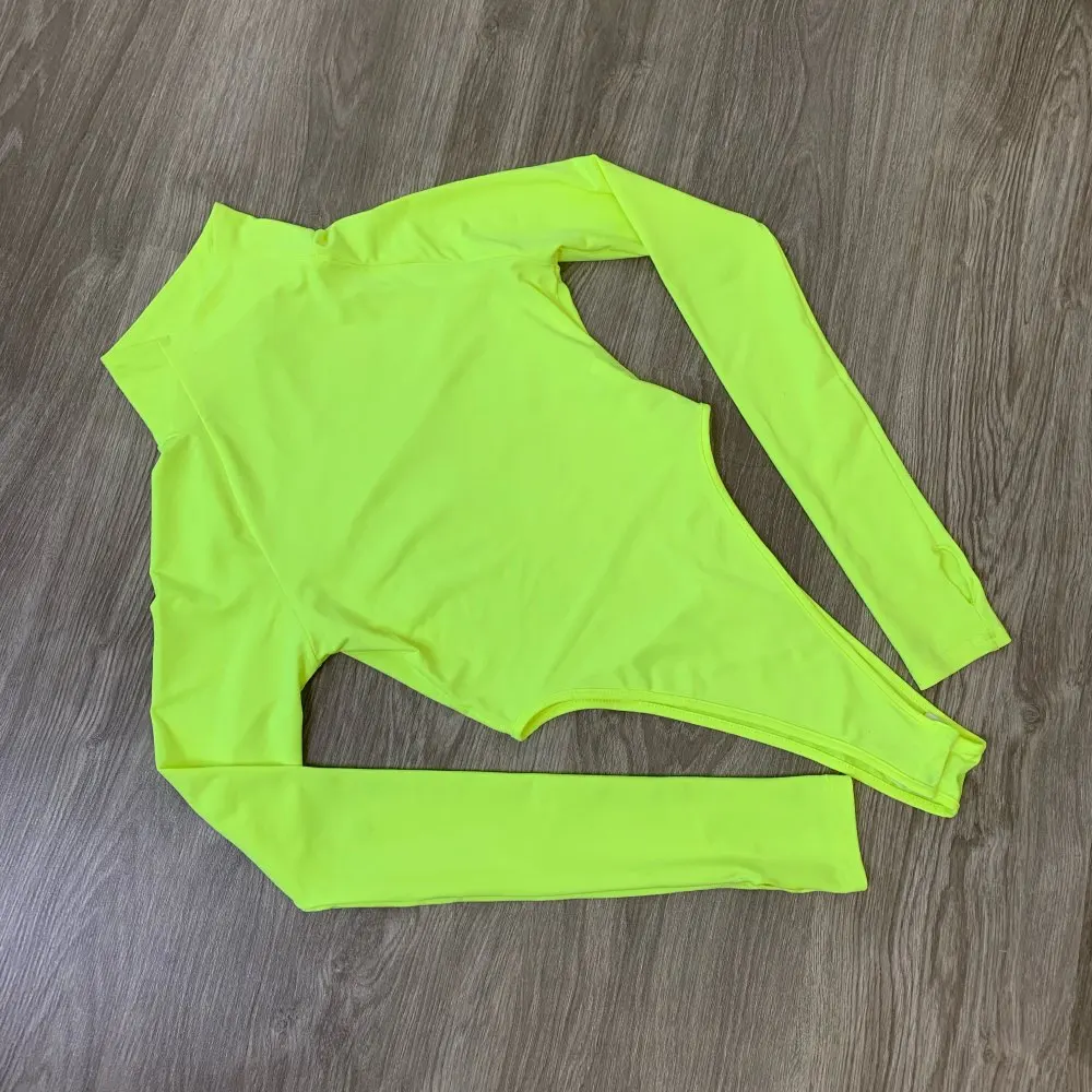 Good quality, really long sleeves and really high open waist . Love this hole in the sleeves