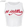 Los Angeles Letter Print Casual Knitted Cropped Top Street Wear Outfit