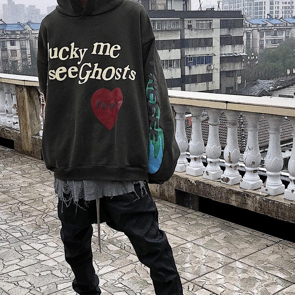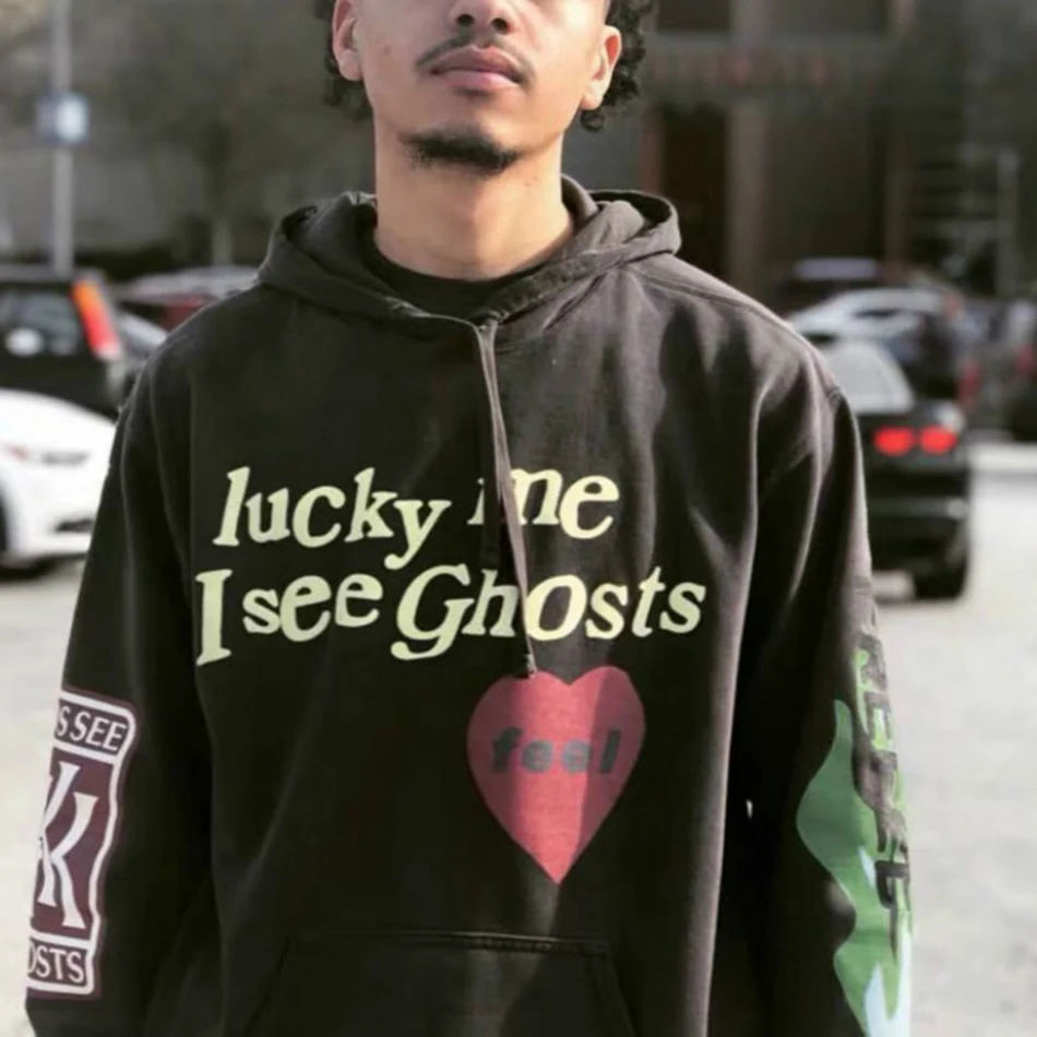 Lucky Me I See Ghost Letter Print Stranger Things Hooded