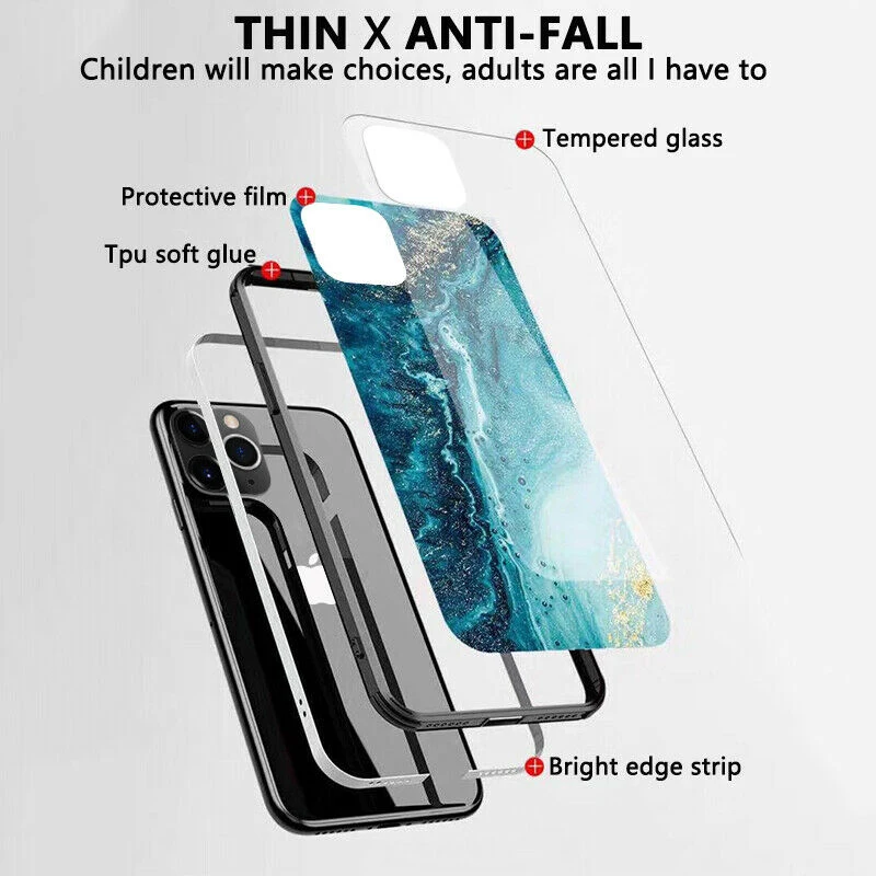 Luxury Tempered Glass TPU Hard Marble Back Cover Case For iphone 11 Pro Max X XR XS Max 8 7 6 6s plus