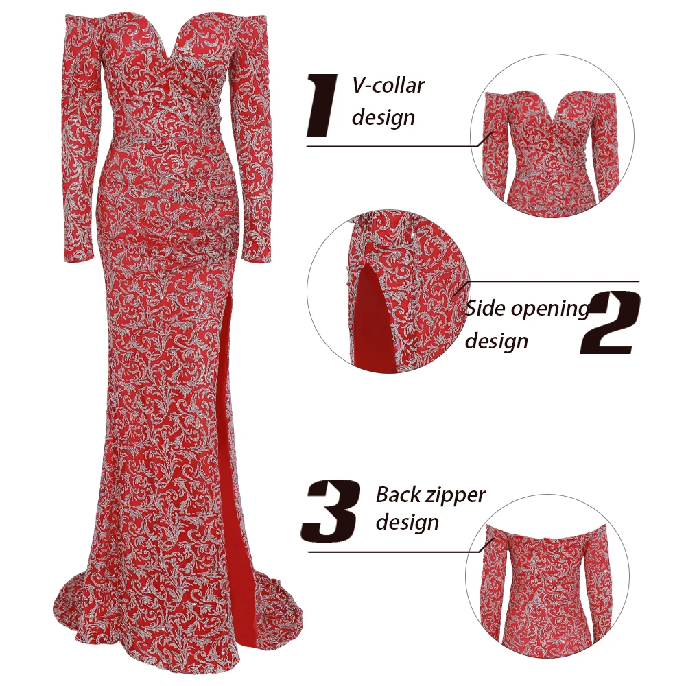 Maxi Dress Sexy V Neck Off Shoulder Long Sleeve Elegant Dresses