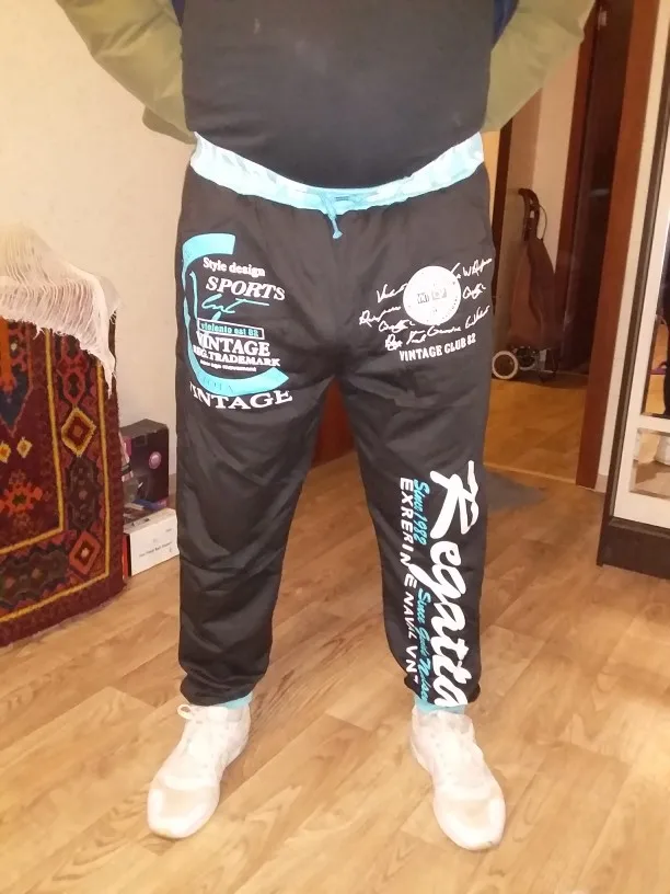 The store is almost "handsome"! I give him 5 (five) stars. Explained everything, answered all questions, sent pants quickly. I received the parcel in Samara less than h/w month .. Cool, light pants made of cool fabric with a cool print (not yet washed). Except, in my terms, it's a pity that a little short. But it's not his fault, but a blunt follow-up to the modern trends of fashion-"bare ankles". And I, in my 66 years, wanted a little "with a scare", I.E. With folds at the bottom of the pants. If anyone will order similar to me, feel free to take a larger size. And in the "wide belt" it is easy to insert an additional elastic band for a clear, individual size of the waist circumference (belt). I'll be glad if someone helps my opinion, my advice. In the photo, the pants are already "tuned" under me. For landmark: My height is 174 cm. My weight is 83,5 kg. Puzo is available Legs short, from the sole (barefoot) to the belt-96 cm.