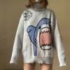 Men Turtlenecks Oversized Sweater Shark Letter JKP4765