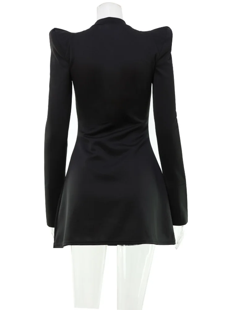 Metal Buckle Hollow Out Bodycon Dress Women Autumn Long Sleeve Clubwear JKP7447