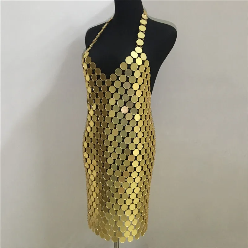 Metal Chain Sequin Dress Luxury Nightclub Party Dresses JKP4727
