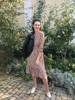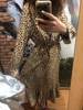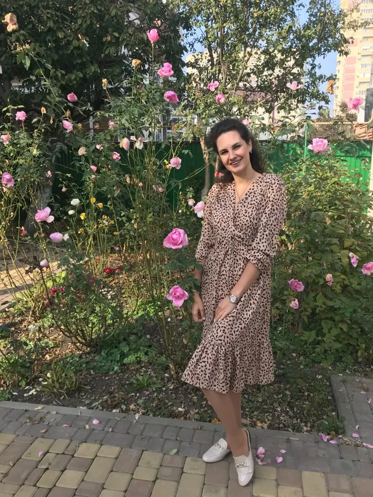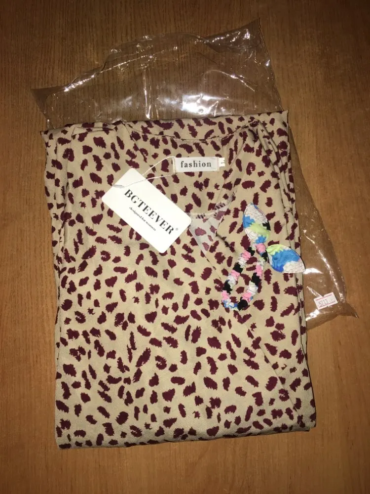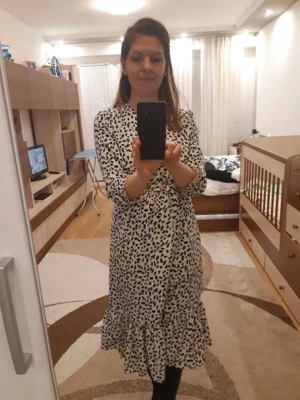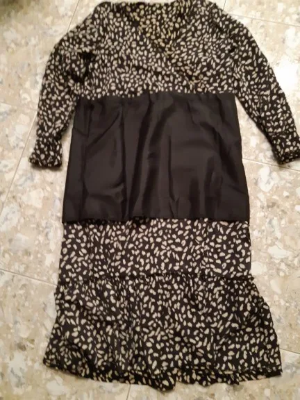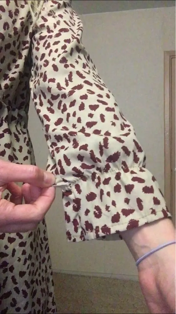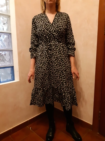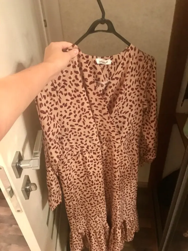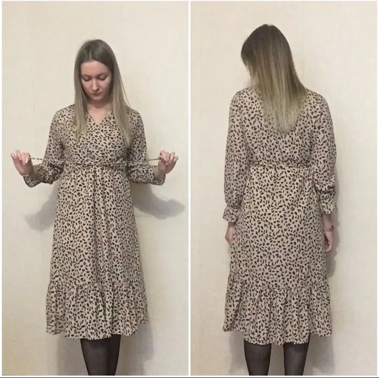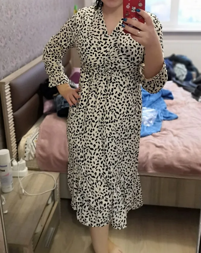 The dress came quickly enough of all the goods. Not "stuck" in a new year with quarantine. The quality of tailoring-in the usual fun)), a little uncomfortable put on. The price is pleasant, when it is worn-no jambs can be seen, it looks good, it depends on the figure, but it does not look cheap. The waist is overstated, almost under the breast, it can not be changed by any belt, etc. The sleeve is shortened. The dress itself is normal in length. Very strongly elecrisis, it is impossible to remove from pantyhose. I'll try to wash, antistatic may help. The photo shows-the bottom of the dress between the legs. Size. I wear M, 36-38, 44-46. My parameters are 92-76-95. Height 168. This dress bought L. I will say for sure-less can not be. On the shoulders and in the chest sits clearly. The picture is pleasant, the speckled is not white, but beige, for the blond is good. In general, you can wear for a change.