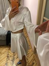 Milan Set White Elegant Satin Cardigan Top And High Waist Mini Skirts Two Piece Set JKP5894