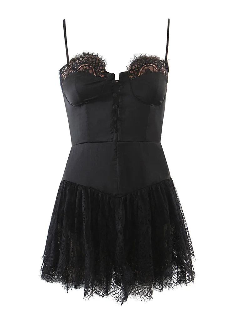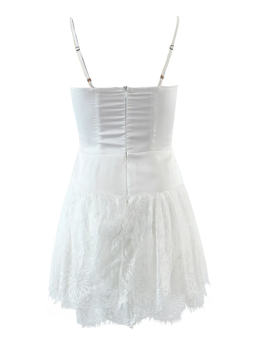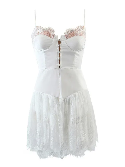 Mini Dress Solid White Stitching Lace Bra Corset style Spaghetti Strap Backless JKP5975