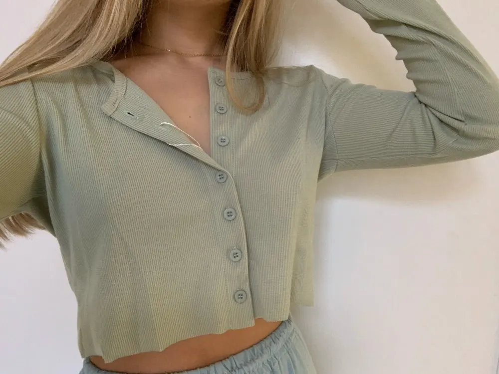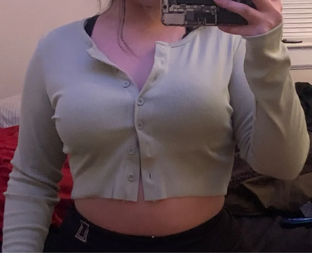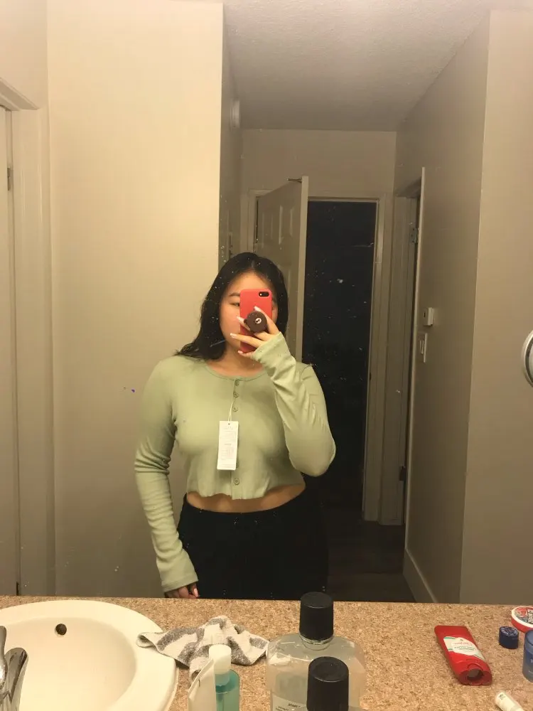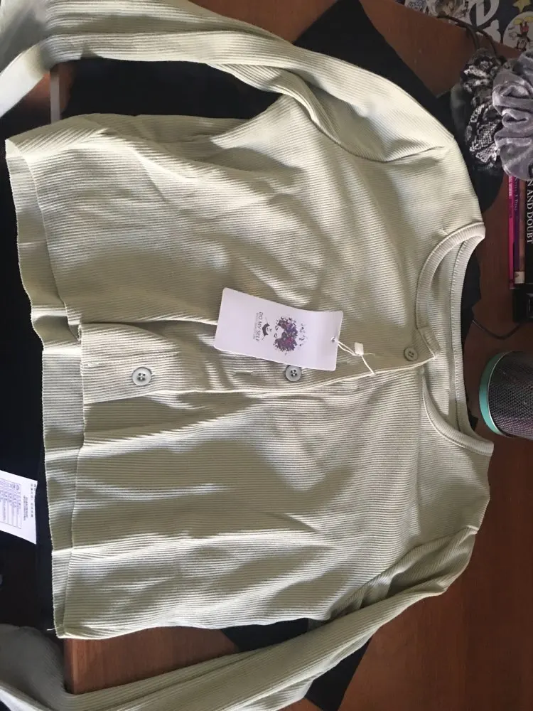Just got it in the mail and i have to say this top so far is my best purchase on Ali. The fabric is thin but it is not bad at all. The color is greener than the photo but it is like a pastel green and i love it. Fits amazing, could have size up but i will buy the red one a size bigger. There is no loose thread, i read the comment about the hem but i like it un-hem. I’m 5’1 and weight 147 pounds for references. Shipping is fast too