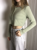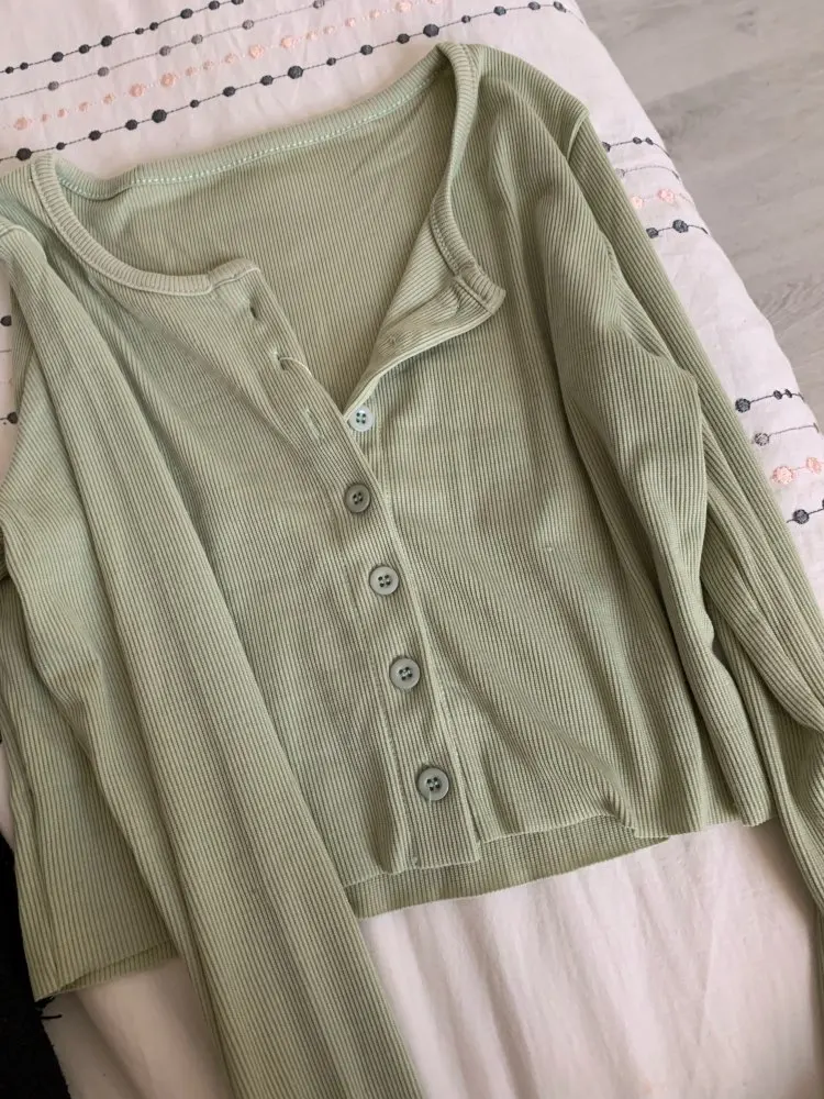 Mini T Shirt Solid Knit Long Sleeve Bottoming Single Breasted Casual Top Tee Shirt Outfit JKP3847