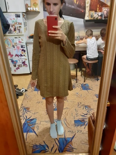 I received my order, very satisfied, thank you. Everything corresponds to the description, the size grid completely coincides, everything is neatly stitched, the color corresponds to the claimed. The fabric is of course synthetic, but pleasant to the body, i will wear it as a tunic. Thanks to the store.