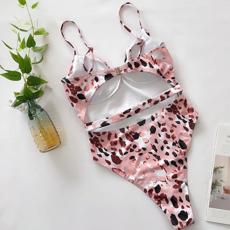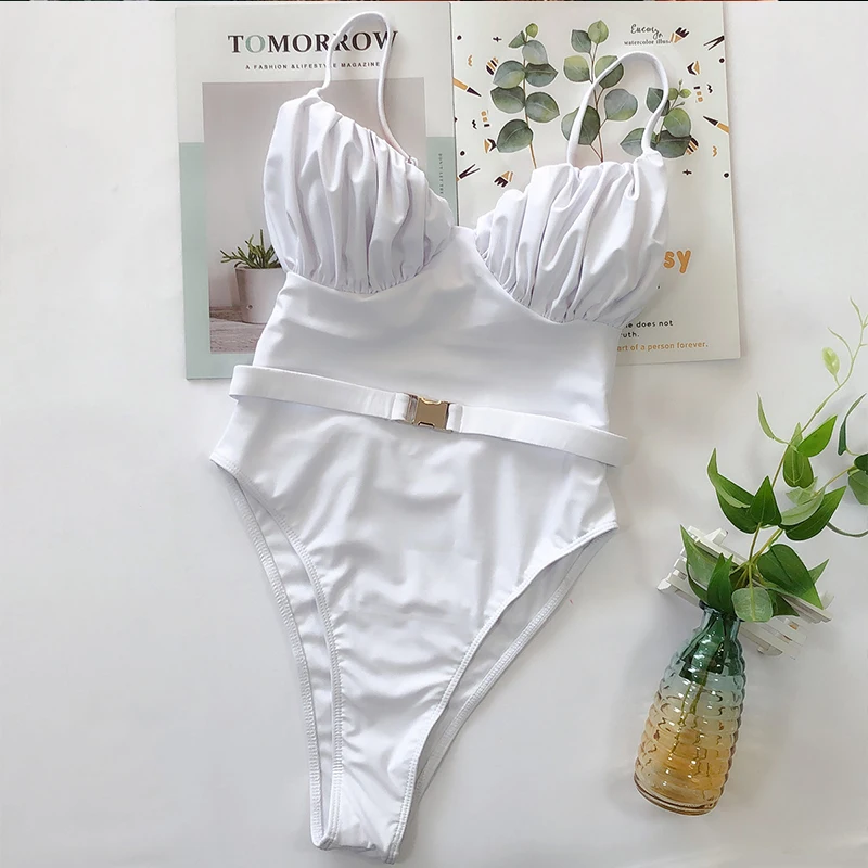 New Bikini Bodycon With Belt Buckle White Black Pink Leopard Print JKP3716
