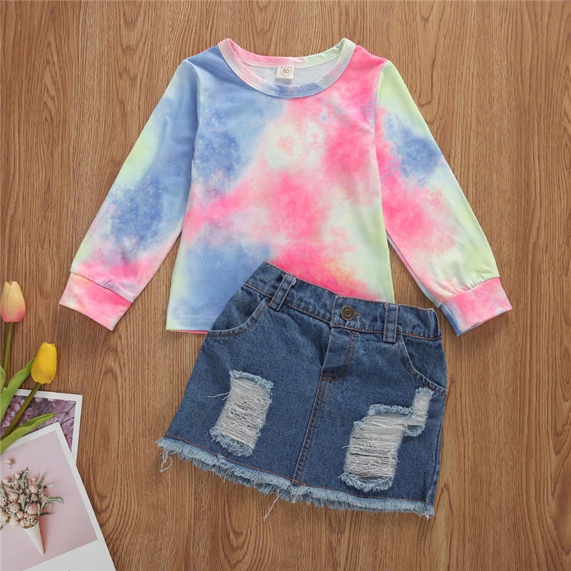New Cheap Baby Girls Outfit T Shirt Denim Skirt Set JKP4448