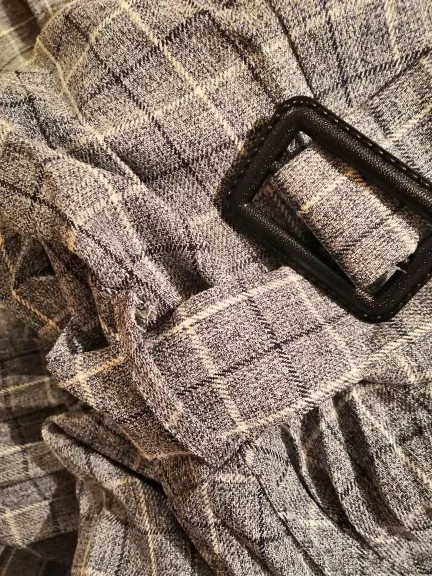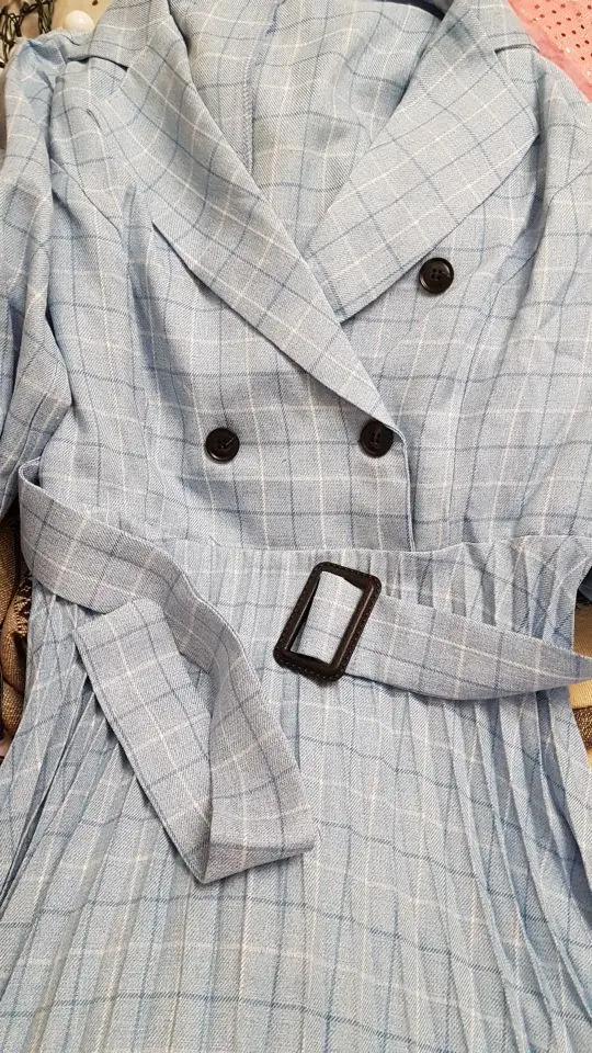 New Dresses Vintage Style Pleated Belt Plaid Midi Dress Office Outfit JKP3835