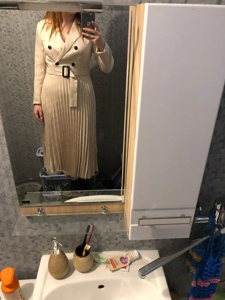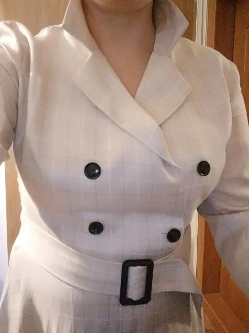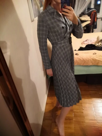 The dress is cool! But the zipper is not sewn very neatly, so I could not unfasten it, some threads stick out-at the edge of the belt, at the loops and on the hem. The hem generally wants to redo, and the buttons do not really like)) but it's all possible to correct, as many in the reviews have already done)))
