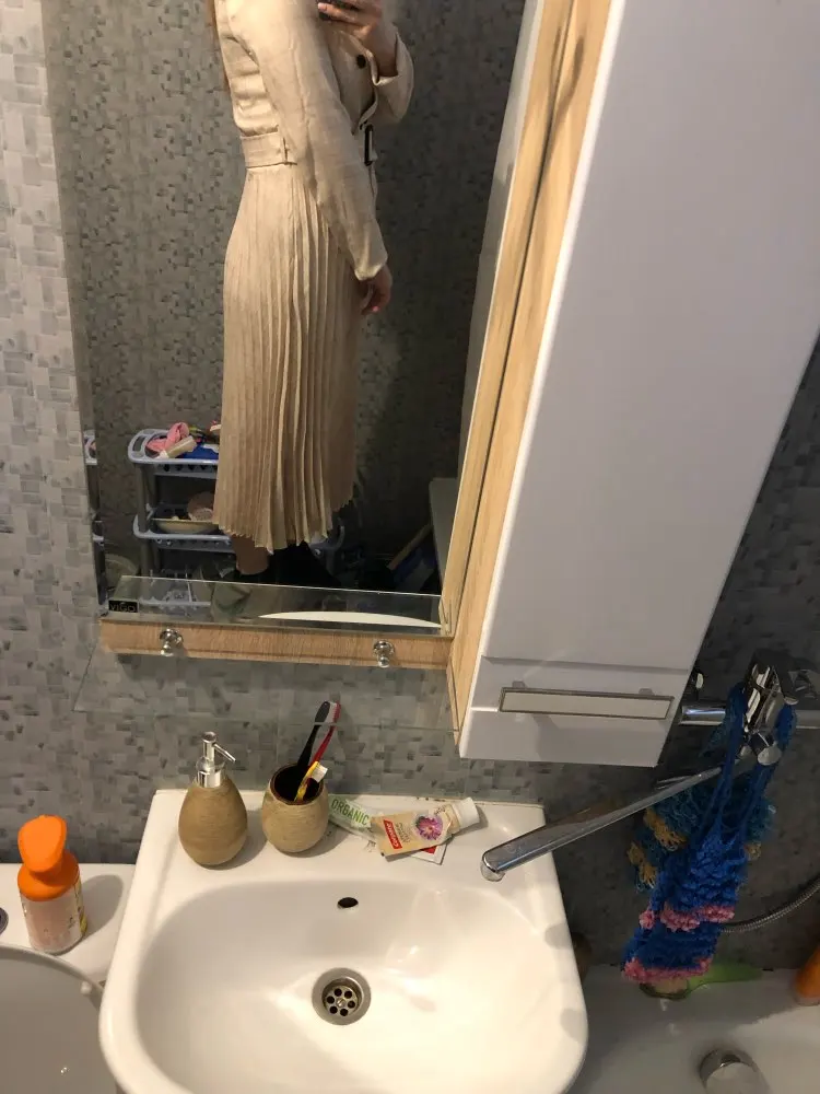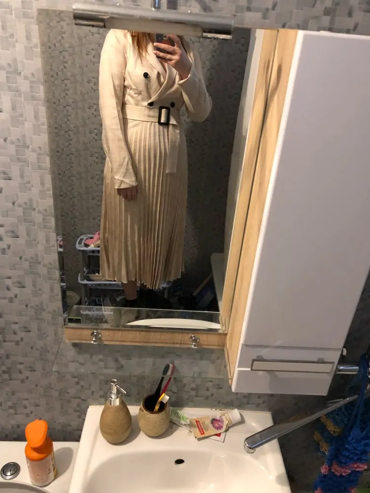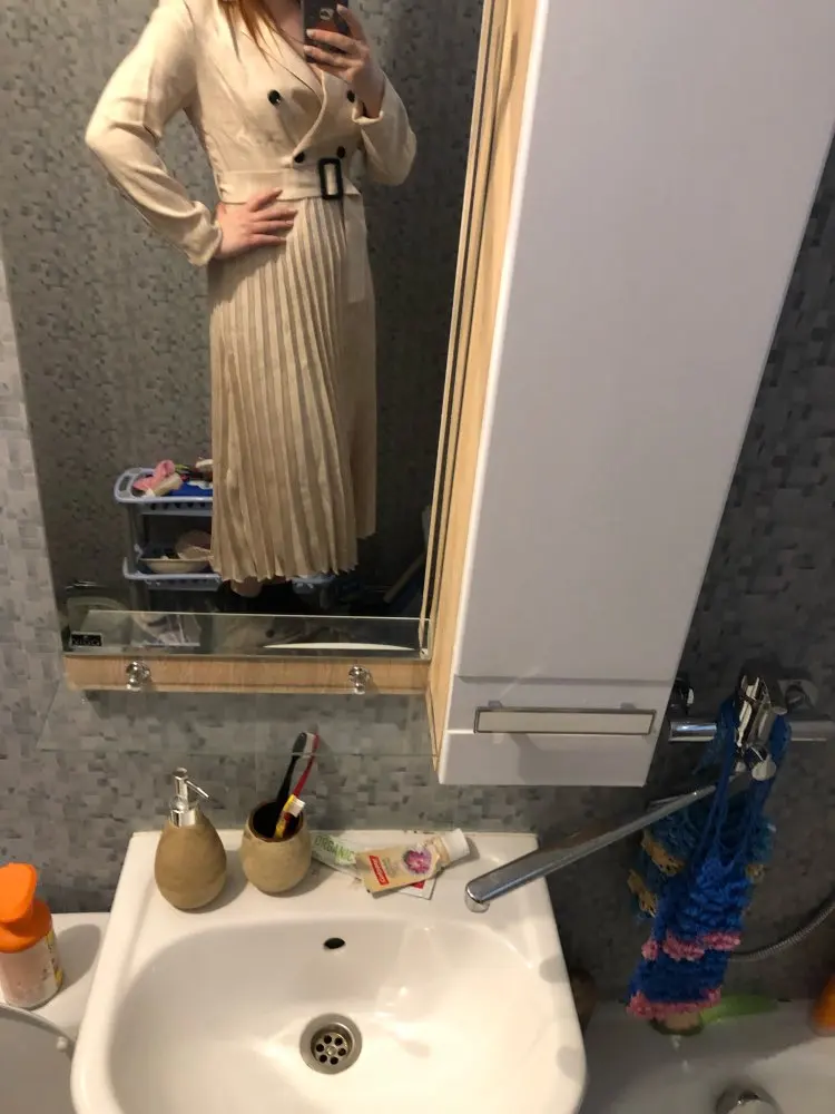The dress is excellent! The village on me is good, only a little will have to change the buttons, well, it's nonsense. My height is 154, weight 64,95-80-104, took the size L. The seams are even, odorless. There is a small stain on the skirt, I hope I can bring it out. The store is sociable. Recommend!!!!
