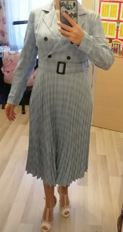 Cool! Size L but og 100 cm. Thank you. Delivery is fast. On the sleeve made a crease, on the shelf on the front, too, tuned one side to the other to the top buttons. Sleeves by the way are long for height 1.65 and the length of the dress to the middle of the calf.
