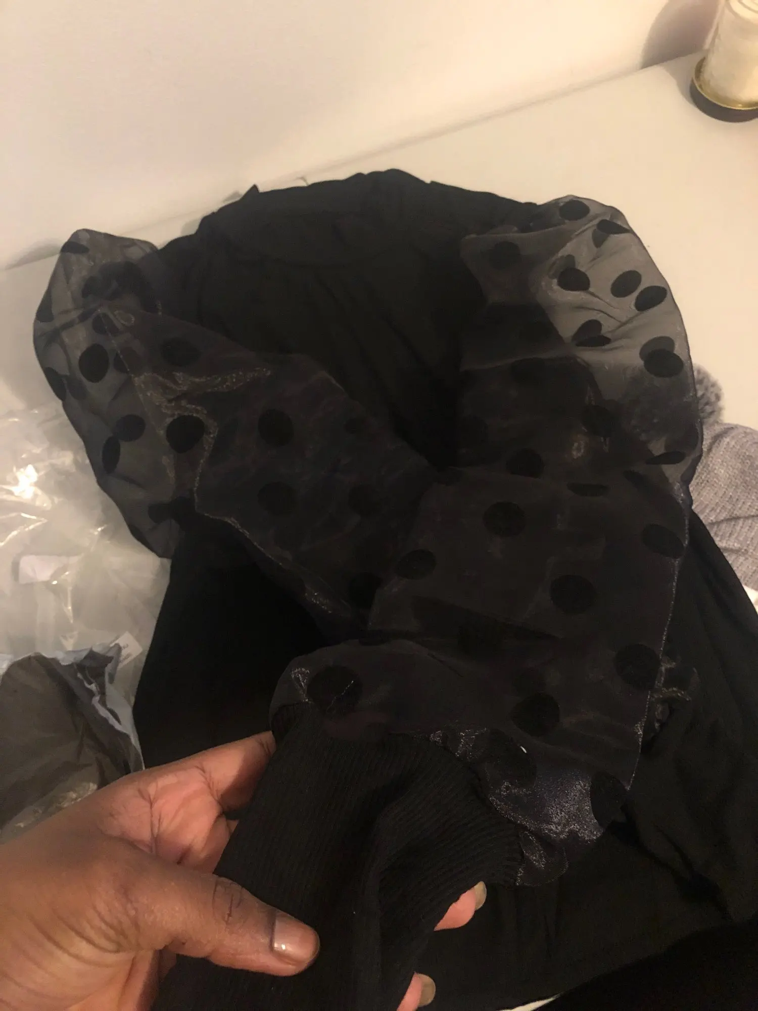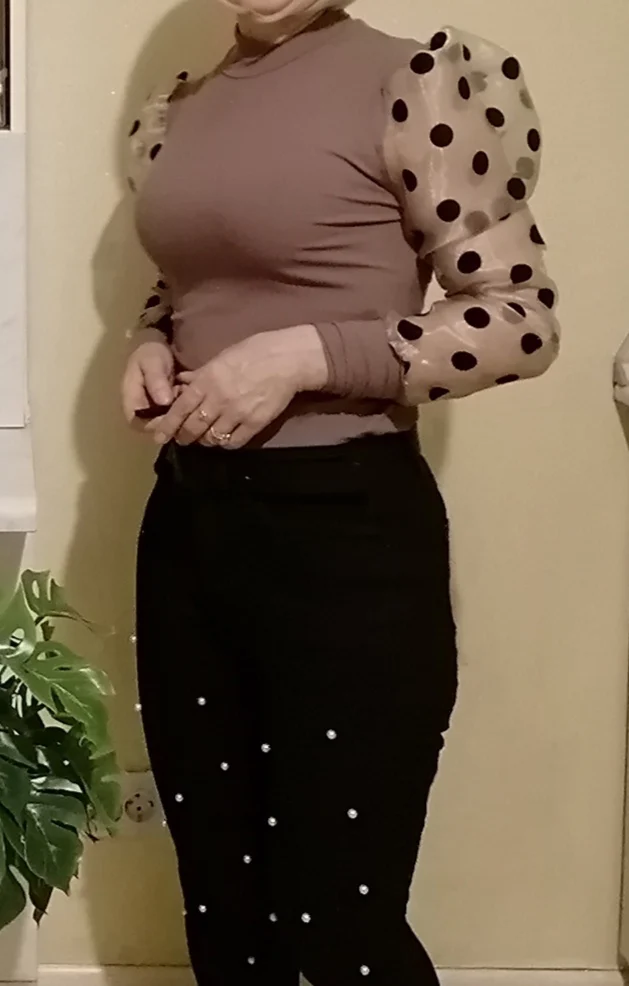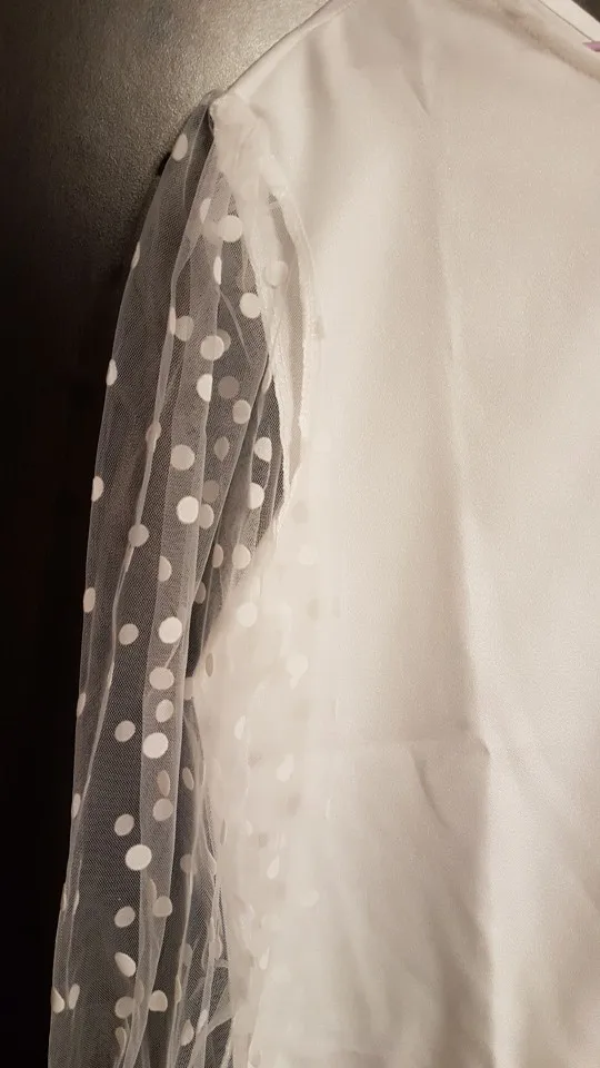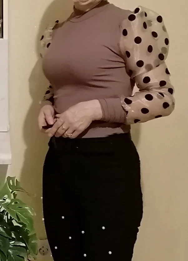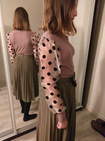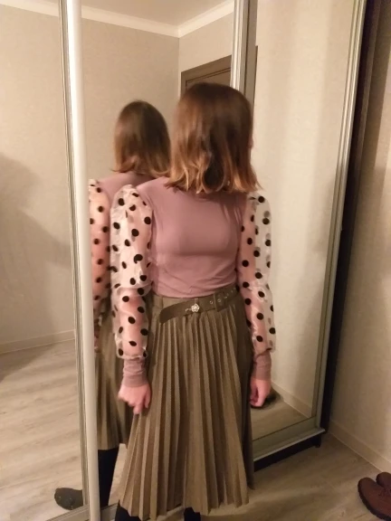 Blouse to the Moscow region came in one month. The fabric is thin, but does not shine through, the sleeves are a little prickly, but not critical. On the blouse there are some stains like from the iron, I hope after washing everything will be evenly.
