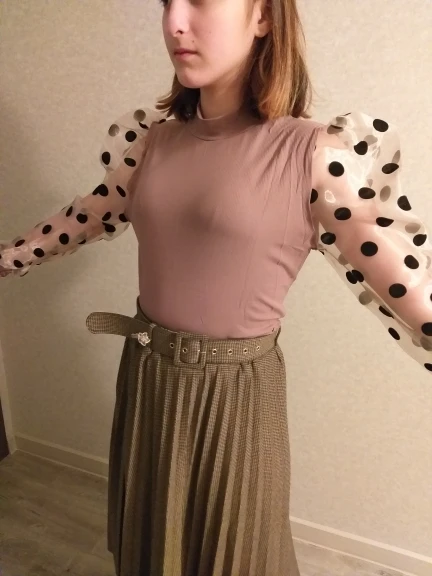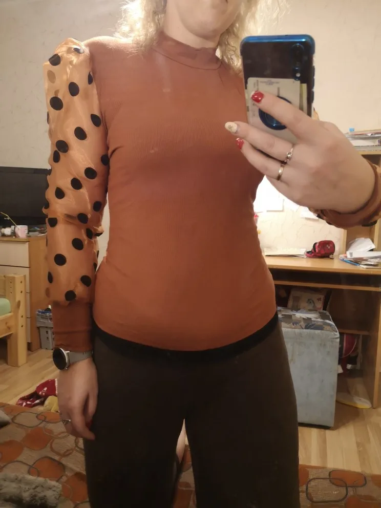 Came very quickly-a week to Moscow. Served. The fabric is thin, but do not be afraid. It is of normal quality. And pts cool sleeves. For such a price 5 points and with jeans, and with a leather skirt I will wear.
