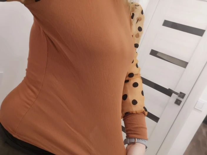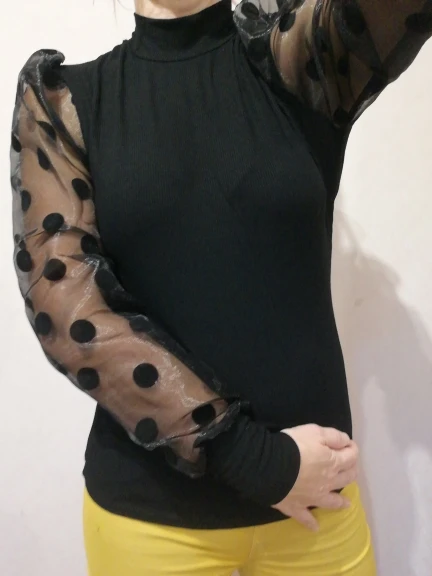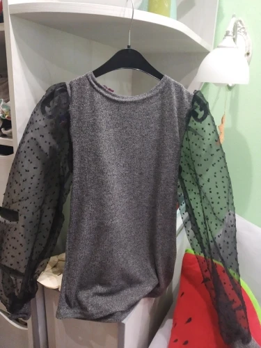 The blouse is good. Looks like in the photo. Delivery to Ukraine 2 weeks to new mail. Knitwear is thin, pleasant to the body. Sleeves a little stroller, but not critical, a little. I'm happy. Thank you!