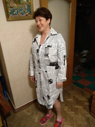102-88-110, height 167. The shirt is huge, probably at 56 times. The stand at the collar is very high, inconvenient. The fabric is pleasant. Rather, like a home robe.