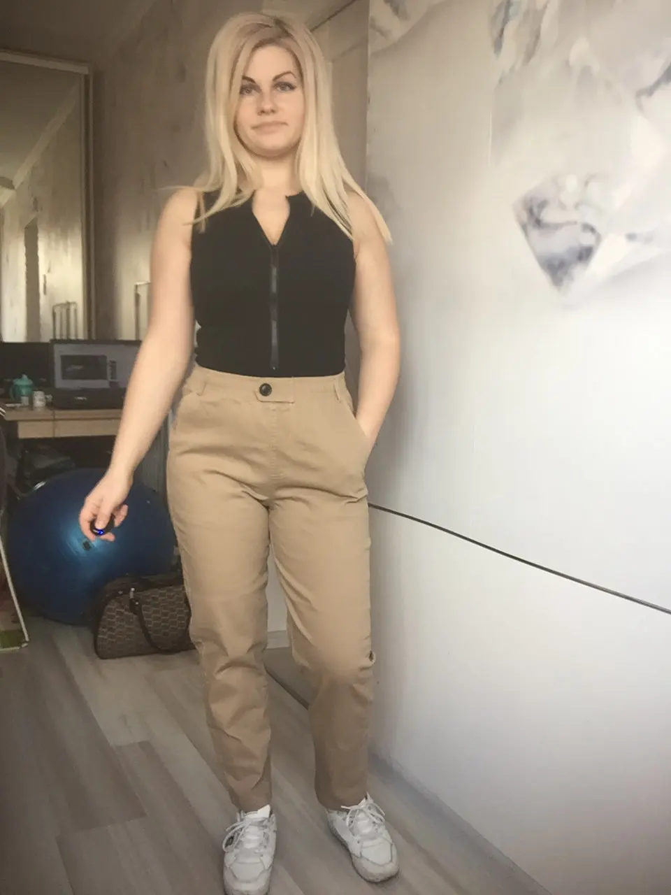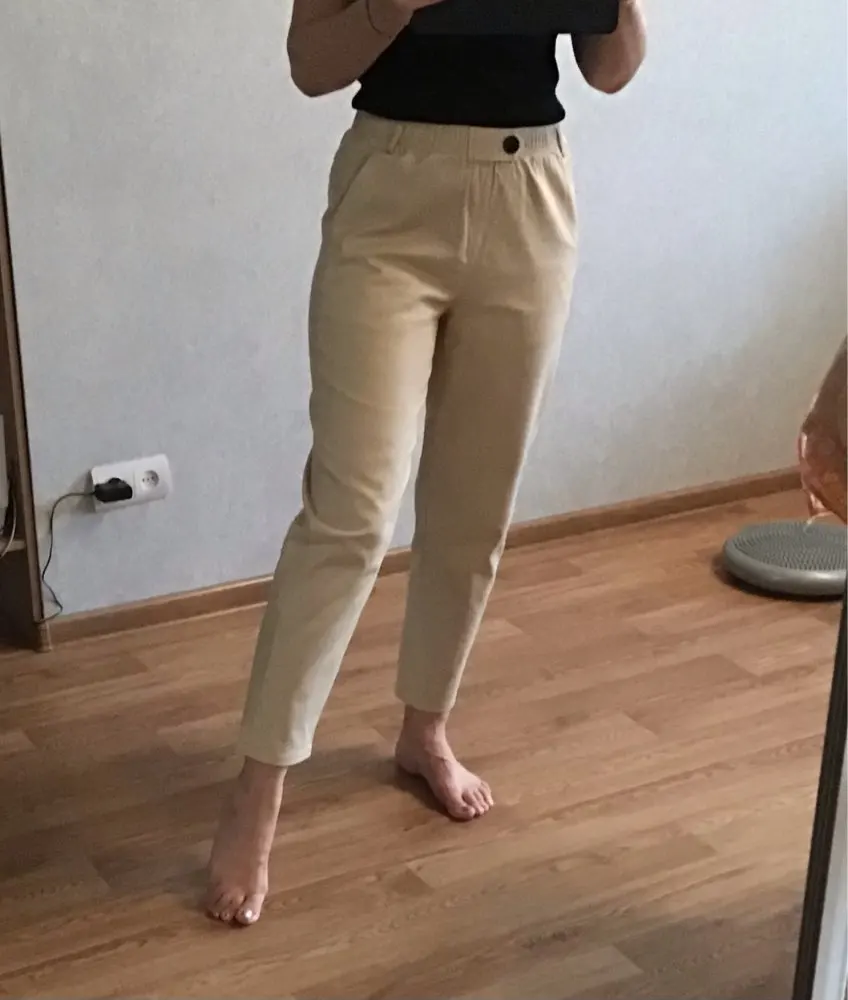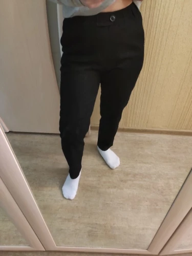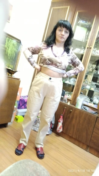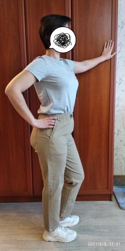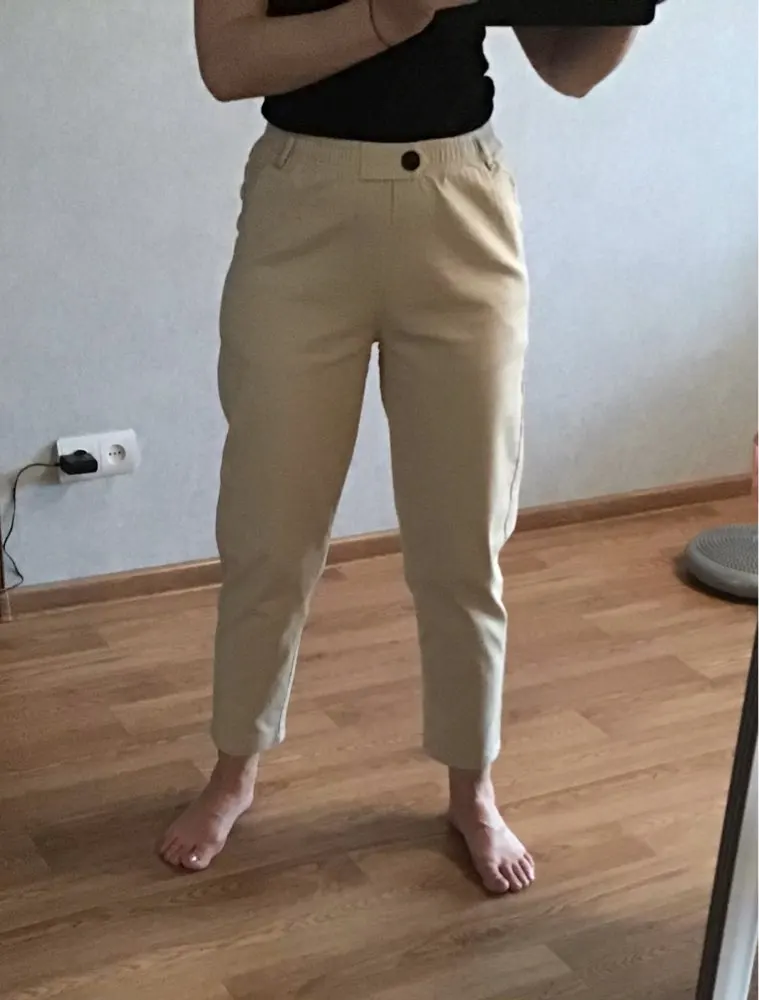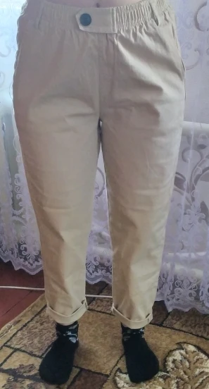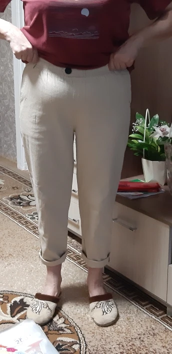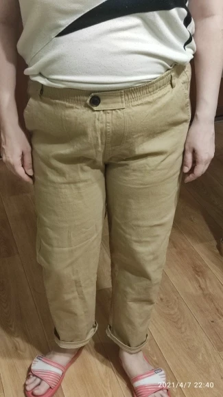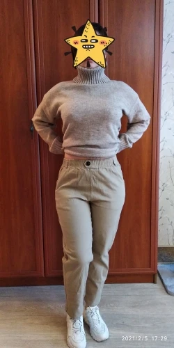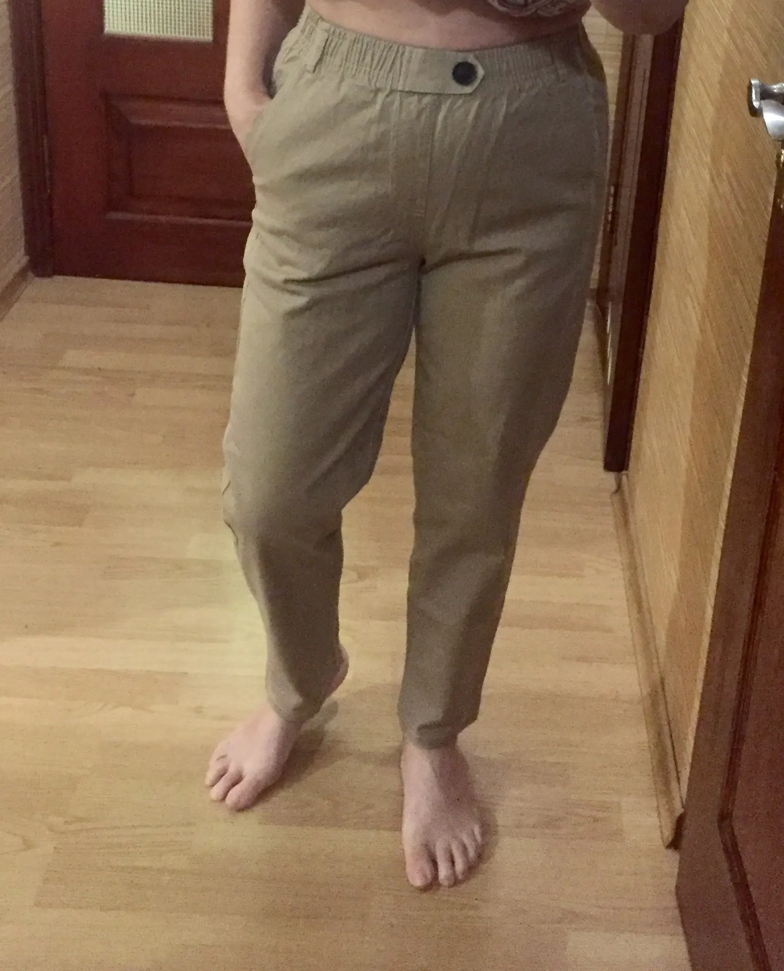 Pants are not bad, for every day, correspond to the description and photo of the store. Cloth is dense, similar to canvas. On the parameters ot-73, ob-95, the size L sat normally, perhaps it was necessary to take XL to sit down more freely (as in the seller's photo)))) The height of 156 cm is short, but this is such a style. The pants were of different lengths, but the evaluation did not decrease, because the seller compensated for this defect...