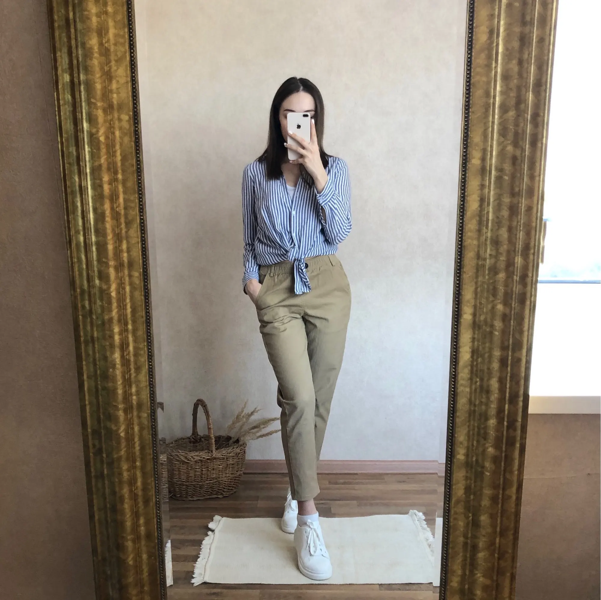 Стильные брючки Штаны такого плана моя любовь Доставка стандартная около 10 дней Упакованы отлично Качество пошива шикарное, строчки ровные Материал: хлопок, спандекс Достаточно плотные, немного тянутся Брючки на резинке, есть петельки под ремень Спереди и сзади карманы На параметры 85/62/90 рост 164 заказала размер М Всё устраивает, но хотелось быть чуть-чуть прибавить длину Ну а так девочки, конечно же к покупке рекомендую ♥️