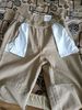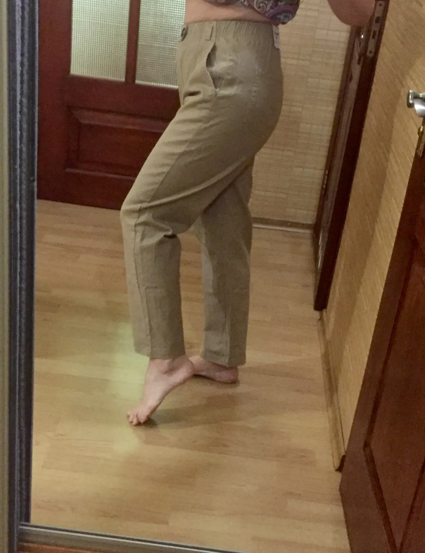 Карманы дырявые и в стрелах. На бедра 104 и талию 84 сели плотно, заказывала XXL, очень плотные, не на лето, короткие, внизу расклешенные, видимо, для подворота.