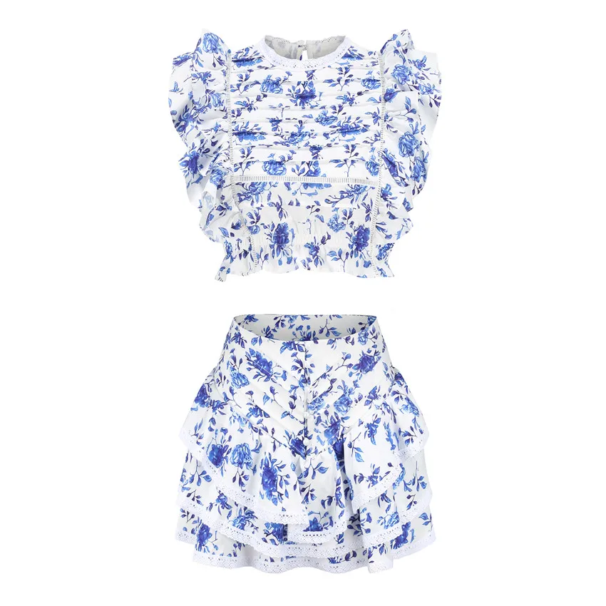 New Summer Set Outfit Sexy Ruffle Top And Skirt