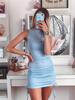 New Summer Solid Casual Slim Mini Wrap Dress 2020