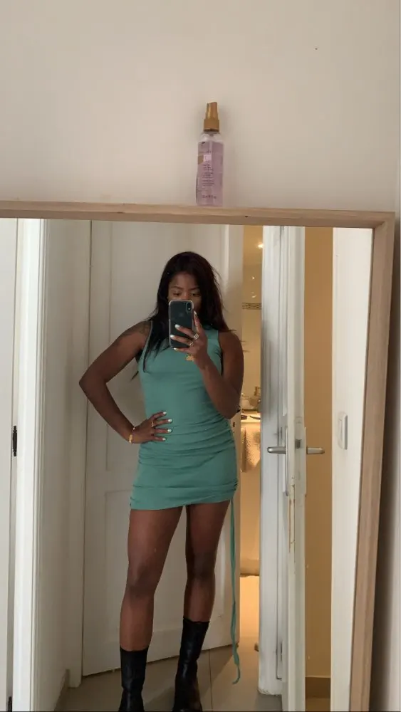 Pleasantly surprised by this purchase. The model is exactly as described and true to the photos. The fabric used is rather qualitative and super comfortable to wear. I'm 1m65/ 62kg and I took a size M, it's a little tight for my taste but the fabric is stretch. A little long to come but it's probably because of the pandemic.