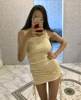 On its parameters 91-64-93, height 167 cm I chose the size L and he approached me very well. The dress is adjusted thanks to the laces on the sides, which make the assembly and adjust the length. The material is cotton, polyester and spandex, but it looks like the Prevail of the first. The fabric is very pleasant to the body, does not shine through and stretches well, looks like something on knitwear but at the same time the dress keeps the shape well This dress in this store is presented in four colors, I chose in cream color. I will wear the dress with both sneakers and shoes and two spectacular images with one dress at me in pocket The quality of tailoring is excellent, without passes, without gaps and without sticking threads.