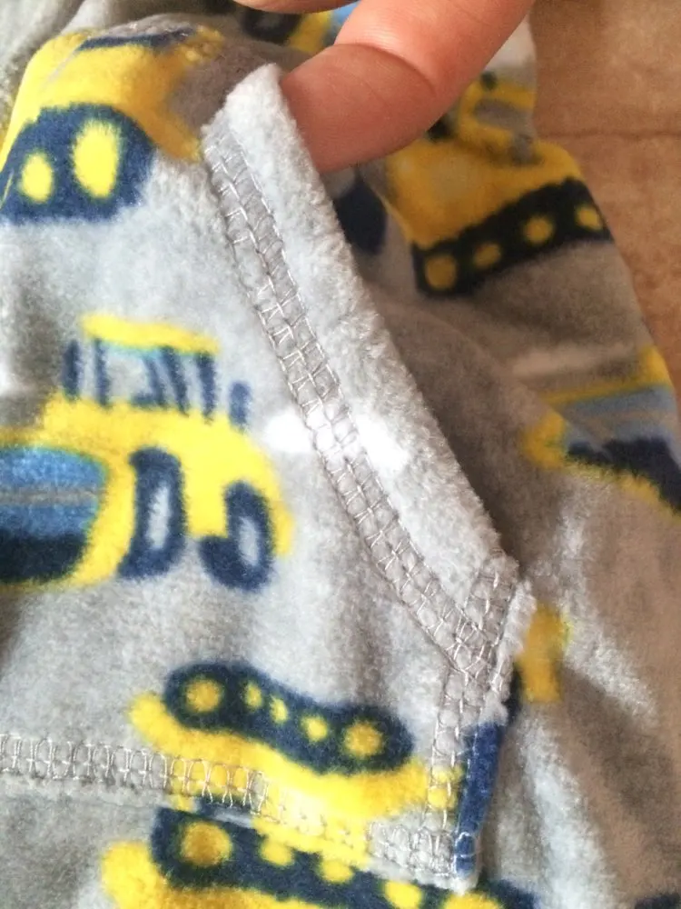kombez bad. 2 years fit. polar fleece fabric. but sticks smell no little thread. like us overall