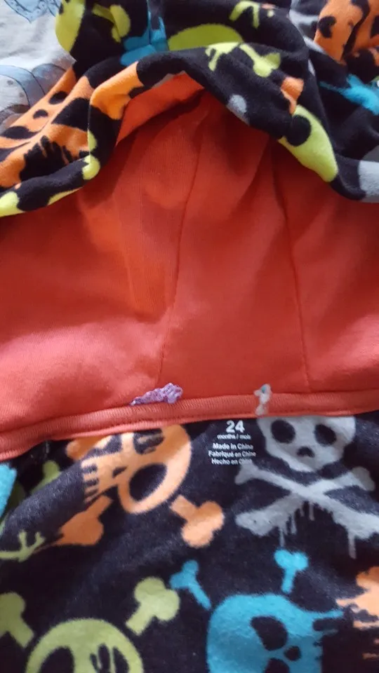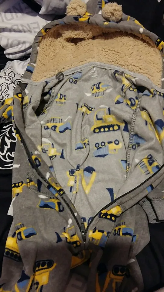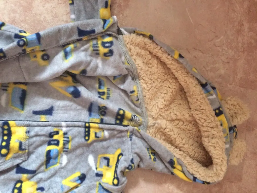 Good fleece kombez zipper. Lining in hood. Take size 24 months. Our year and 4 sitting is good, have stock in the fall. You do not know enough to two years. Come in two weeks!