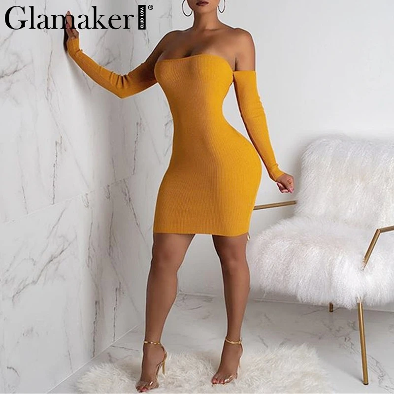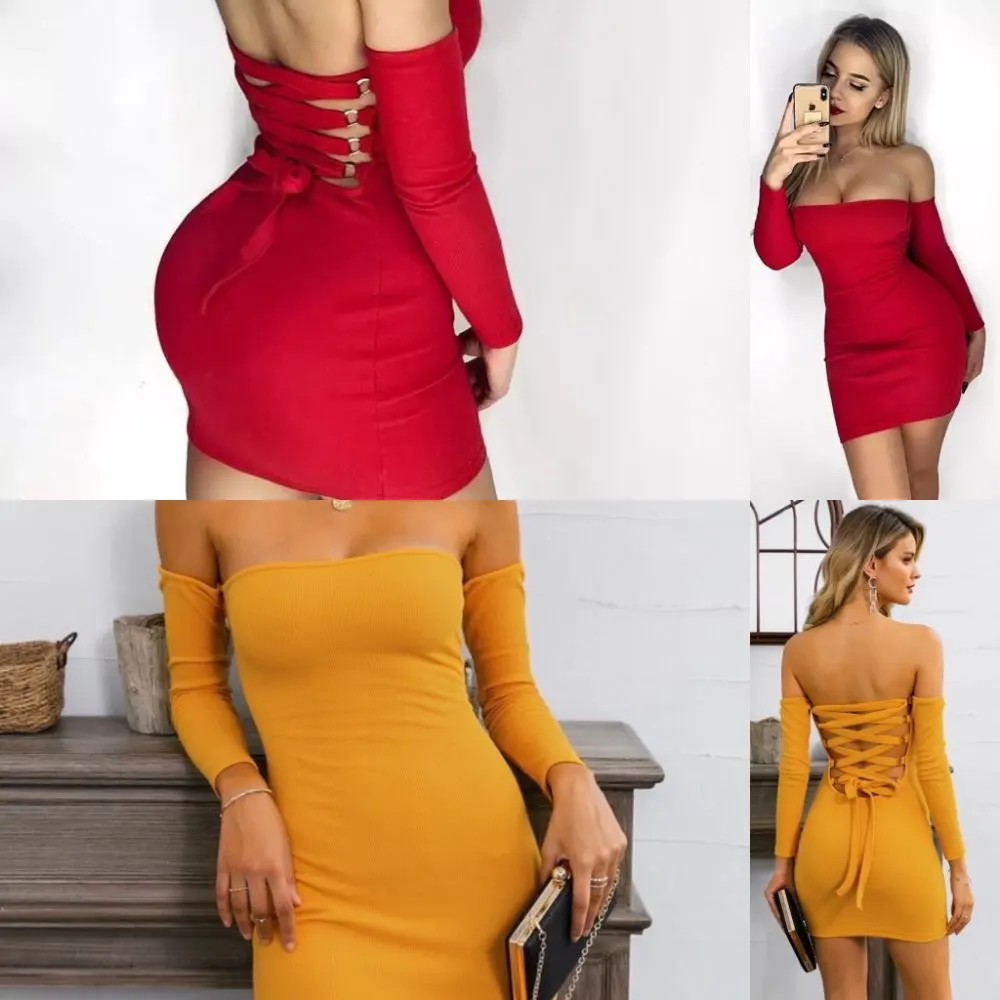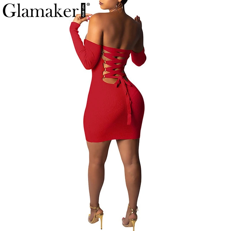 Off Shoulder Lace Up Back Bodycon Knitted Dress JKP3897