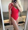Red swimsuit is always in trend. And so i could not pass by the most actual model this season. On its parameters 93-73-97 and height 169 the size m sat perfectly. Nowhere nothing falls out, the chest keeps just fine. Inside there are liners, if desired, you can remove them. Straps are adjustable. On my height, the swimsuit sat well, tall girls i think too will suit. I have a small stock in length. Quality pleased, the material does not shine through, the seams are even, there are no protruding threads. Delivery to st. petersburg took 10 days. Track tracked. Swimsuit i really liked, it will comfortably swim, as cool it will look with shorts. To buy definitely recommend!