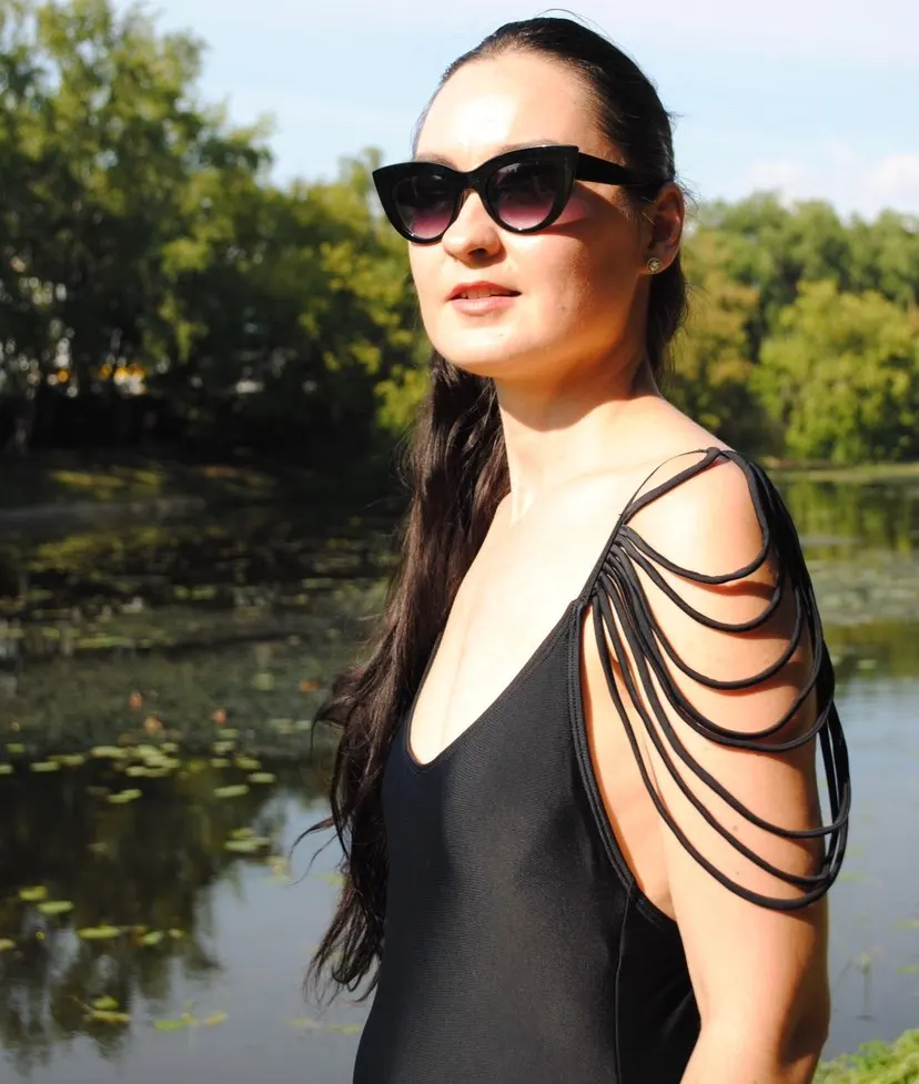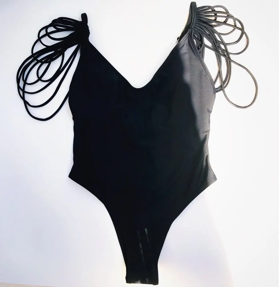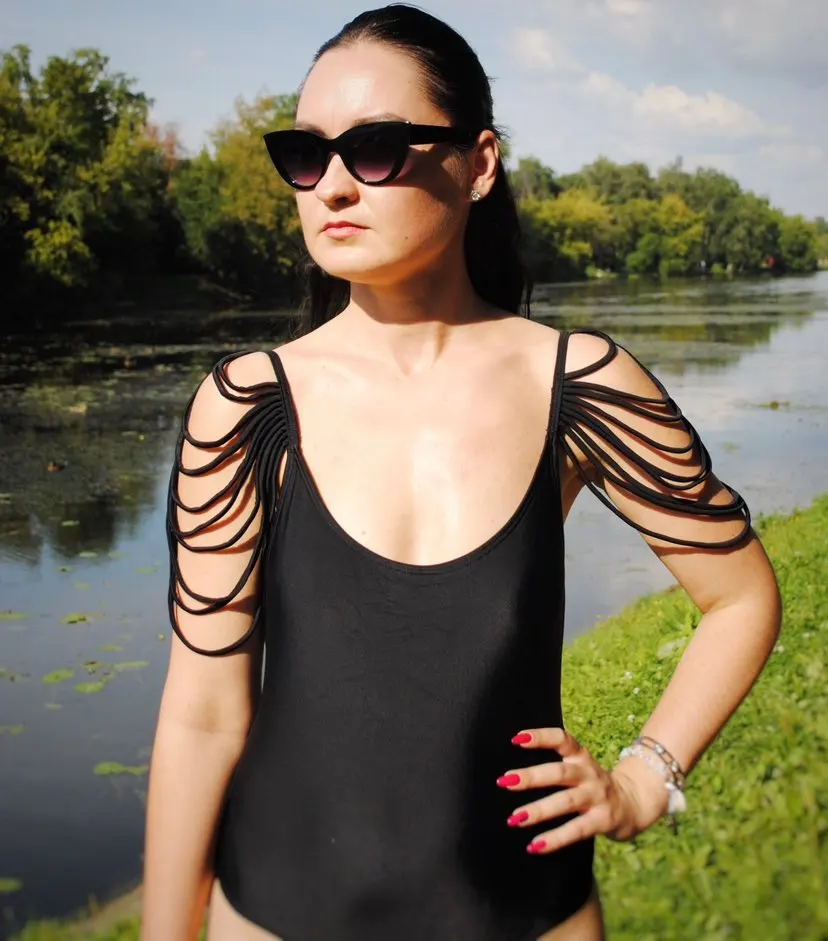 Very spectacular swimsuit, epaulettes look cool! However, i had to steam them before shooting, because before that they lay on the shoulders as they fell. On my parameters (height 162 cm, weight 51 kg, og 85 cm, from 61 cm, about 91 cm) i ordered the size s. feels, the swimsuit is too small for me in growth. In general, since the straps are adjustable in length, this size, if desired, can be stretched and for higher growth. But along with the elongation of the straps, the neckline deepens. And i wasn't ready for that. If you like the deep neckline and there is something to show, the model will suit you. In the area of the thigh deep cutouts, thanks to which the legs seem longer. Material: 82% polyester, 18% spandex. There are removable cups. Hygienic sticker is present. Sewing is good, but the threads were sticking out. Delivered in 12 days, track tracked.