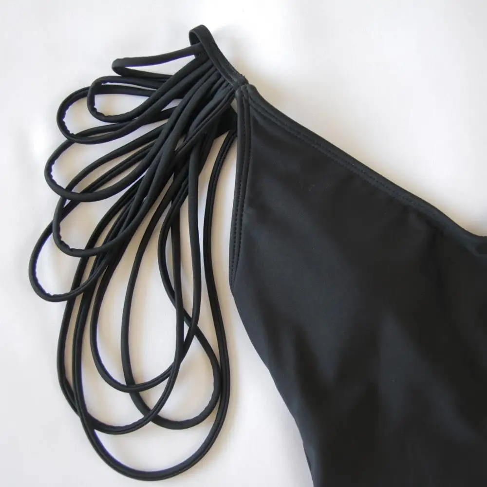 Delivery to the territory of rb took about three weeks. The swimsuit was folded into an individual package and retained a beautiful presentation. The type of this swimsuit can be called mayo! It is characterized by sewing britons and, in this case, a v-neck. The britons are fixed at the lining of the bodice, their length is adjustable. On the shoulders are decorative elements in the form of cords made of nylon, wetting from the shoulders at different levels. The material of the product is good. Not too dense, very gentle and pleasant! Sewing too without censures! Hygienic sticker on the swimming trunks was present. On the bodice there are round paralon cups. Decorative cords come in ugly condition! All twisted, and never lie as in the photo of the store. I pulled out the hell knows how much to weigh in the necessary view, it was necessary to try to pass the ferry! On my parameters 88-67-98 i ordered the size xl. He sat down well, probably, my parameters for him-this is the limit.