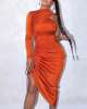 One Shoulder Bodycon Dress Ruched Drawstring JKP4535