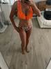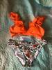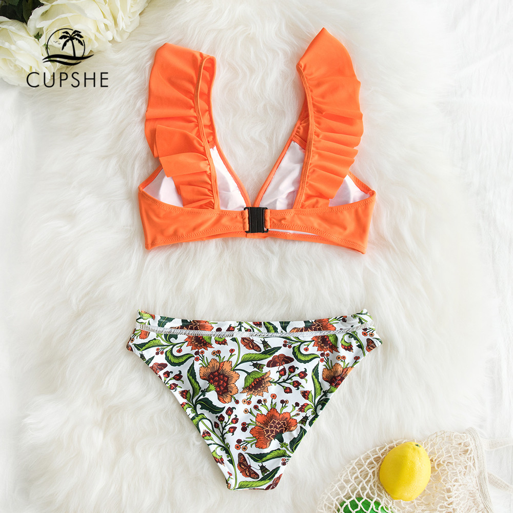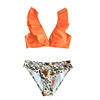 Orange Ruffle With Floral Bottom Swimsuit Two Pieces