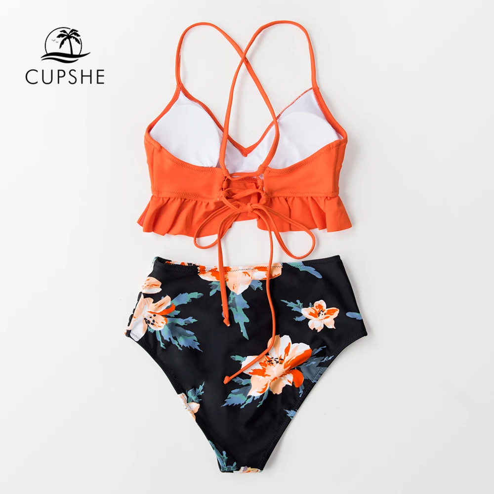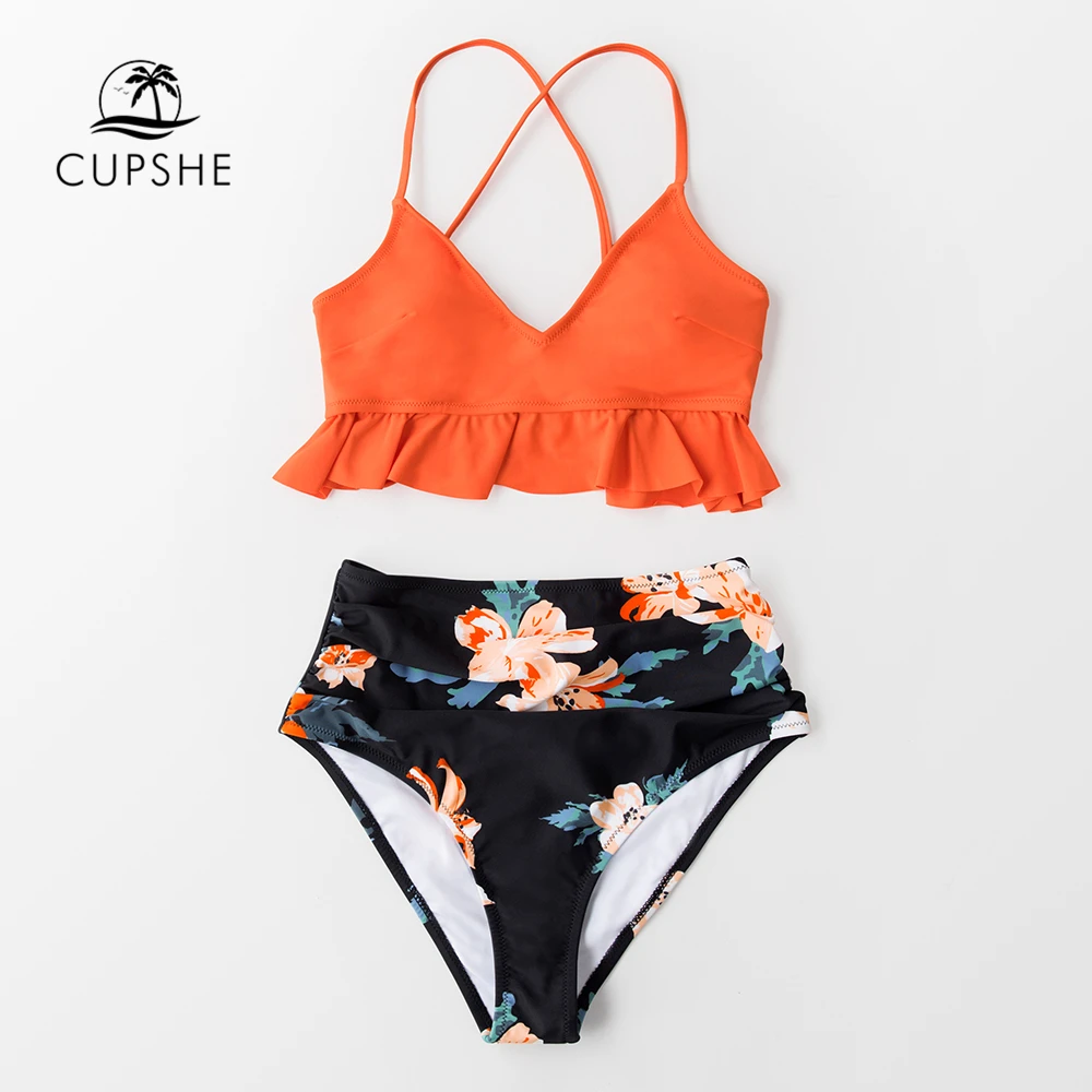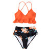 Orange Top And Floral High-Waist Bikini Sets Two Pieces Swimwear 2020 Beach Bathing Suit