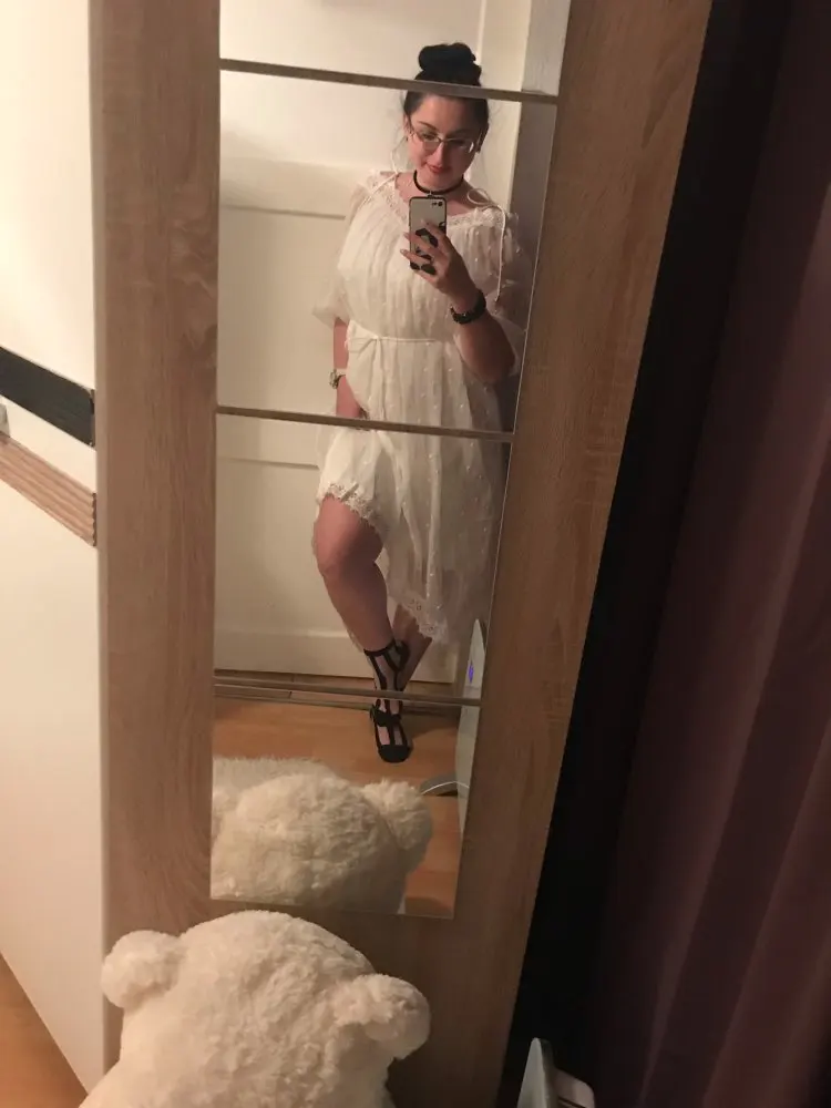 She took for a "pregnant" photo shoot. Very cool. Corresponds to the picture.