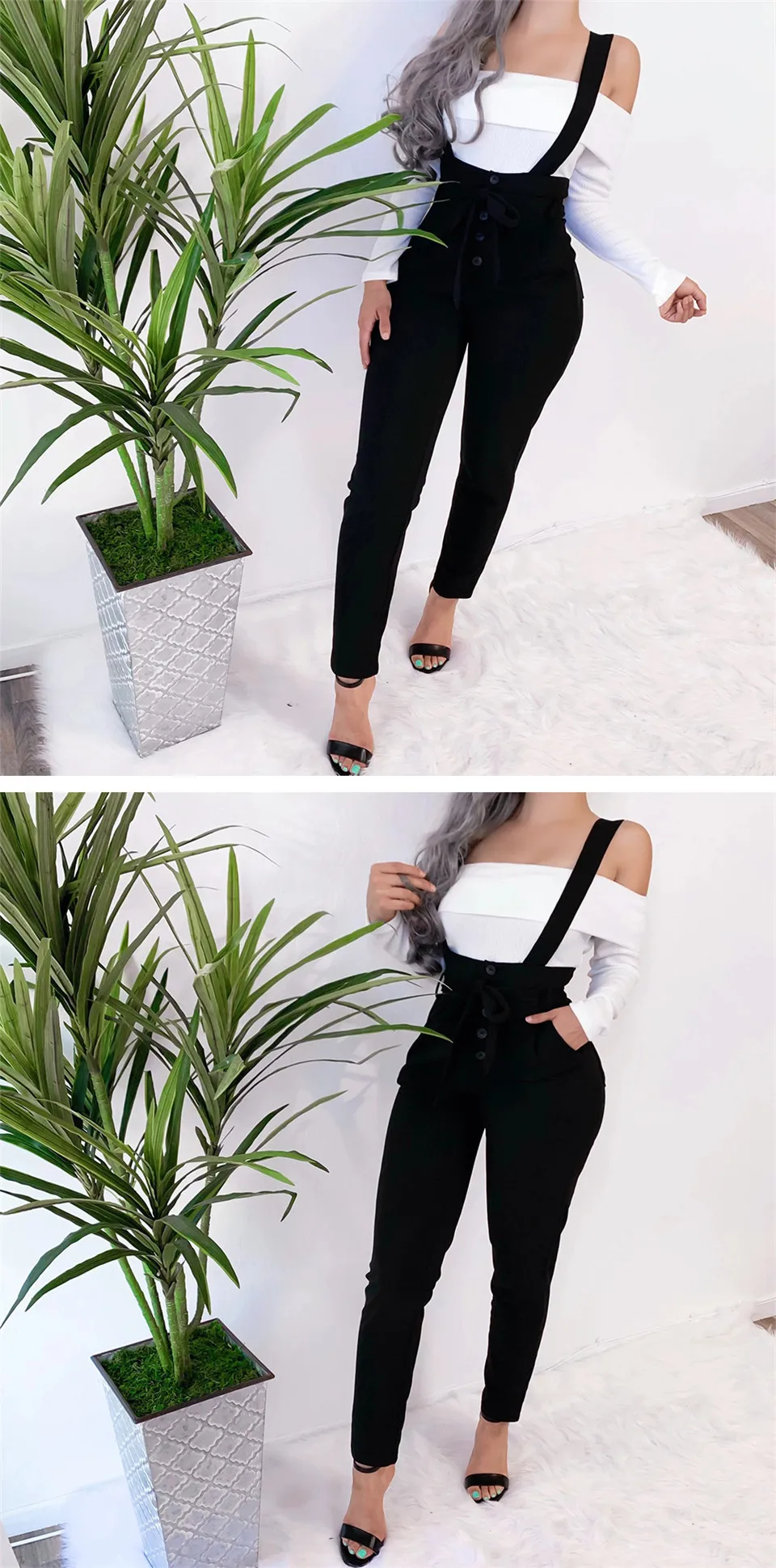 Overalls Black sling Long Pants Women Autumn winter Streetwear Button Pockets High Waist Pencil Pants JKP3783