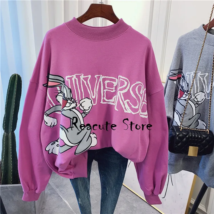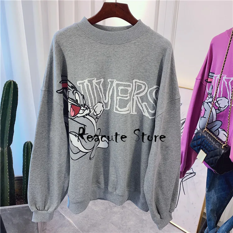 Oversize Sweatshirts Bugs Bunny Cartoon Letter Print JKP42911